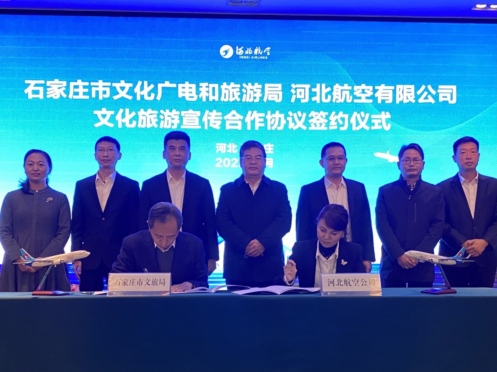 河北航空服務總監王燕晴、石家莊市文化廣電和旅遊局副局長孫瑞峰分別代表雙方簽署協議。