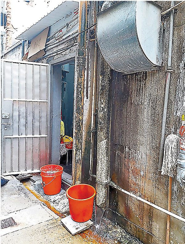 (香港文匯報記者 費小燁)深水埗區舊樓林立、街邊排檔眾多,衞生情況一直為人詬病,如今更有污水樣本被驗出帶有新冠病毒,區內居民可謂人心惶惶。香港文匯報記者昨日到區內多點巡查,發現區內存在四大衞生問題,包括後巷污水四溢甚至飛濺;渠管老舊鋪滿青苔鐵鏽;人流密集之處有人無視口罩令;有大廈並無清潔工人,樓梯間放滿垃圾,區內傳播病毒的風險自然更高。