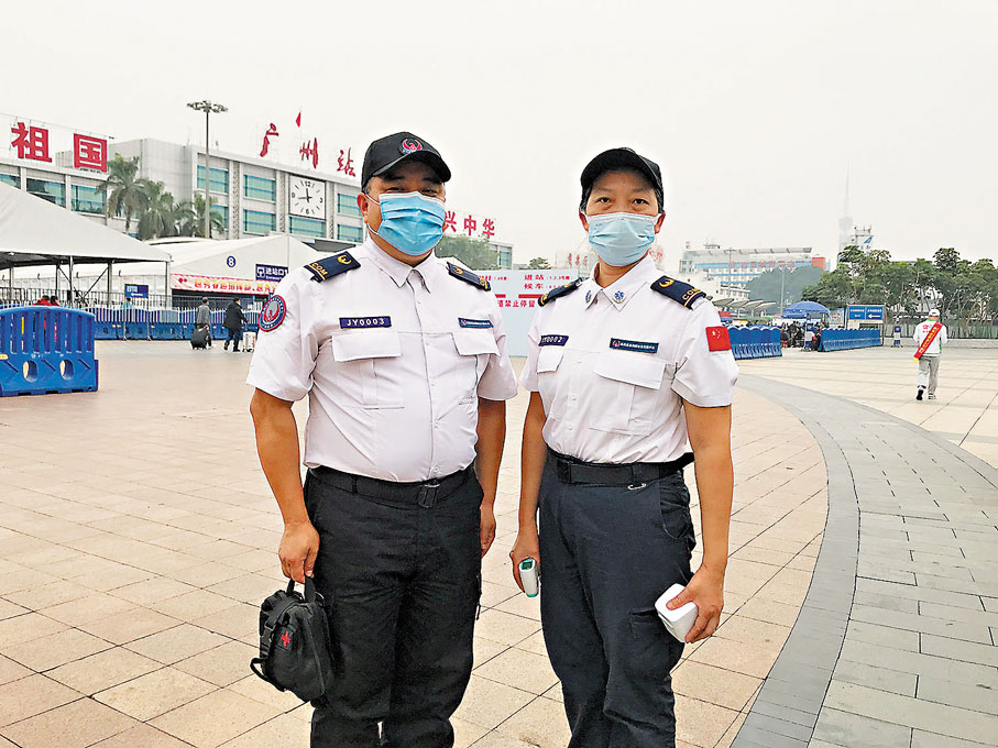 該中心總幹事王莉萍介紹,春運期間,工作隊扎根於廣州火車站一線,在出現高密度人流、突發事件時,先於派出所、120等趕到現場,第一時間做好醫療救治、人群管控、疏導工作。
