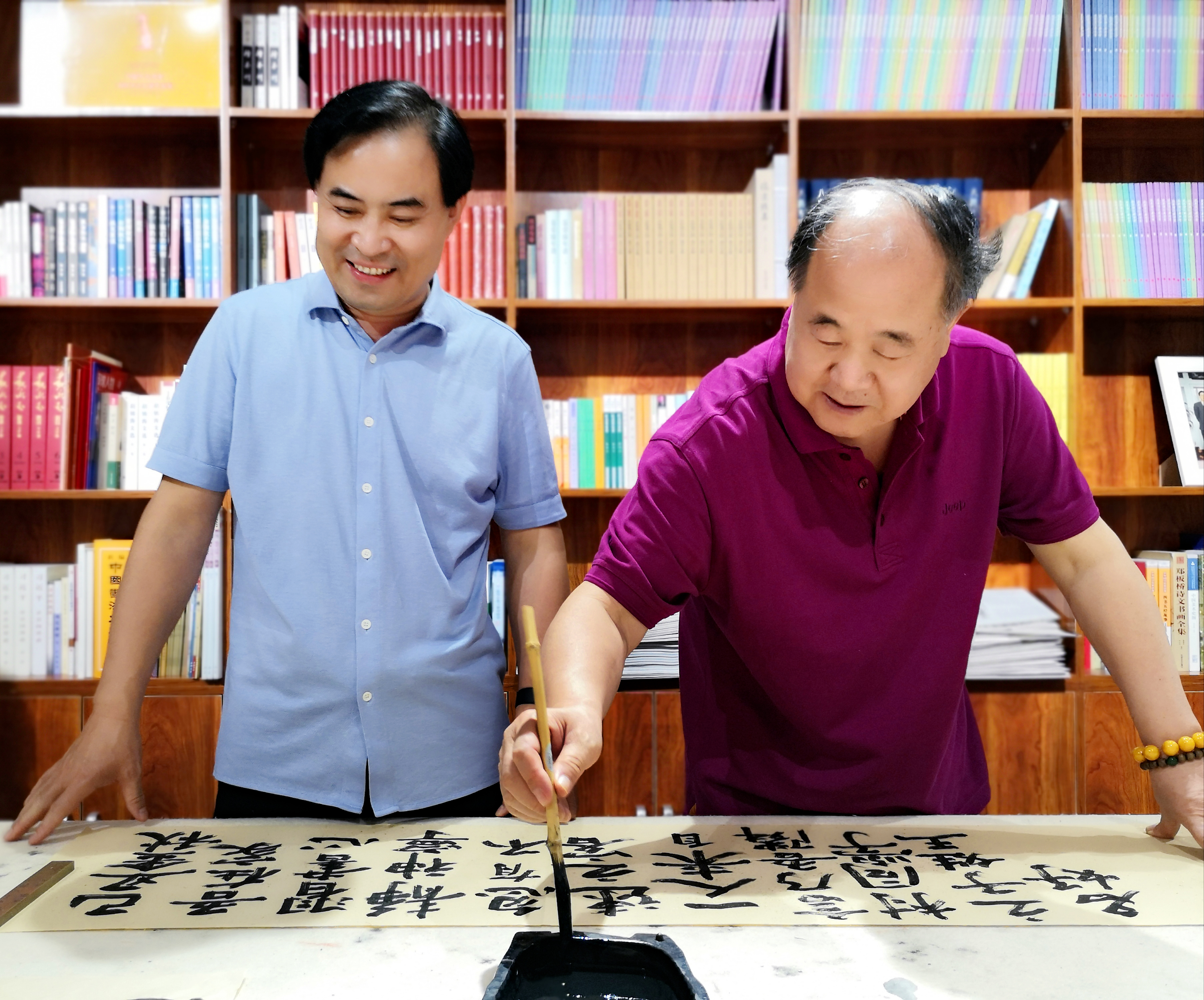 「兩塊磚墨訊」不僅是莫言與王振寄情翰墨的天地,同時也是二人吟詩作賦的田園。莫言對記者說,「從藝術修養上來講,一個作家如果僅僅會寫小說,只具備這方面的一些才能,還是比較單一。作家應該有書法、音樂、戲曲等多方面的修養,看起來,它們好像不直接作用於小說,但它們卻可以潛移默化地發生作用。」