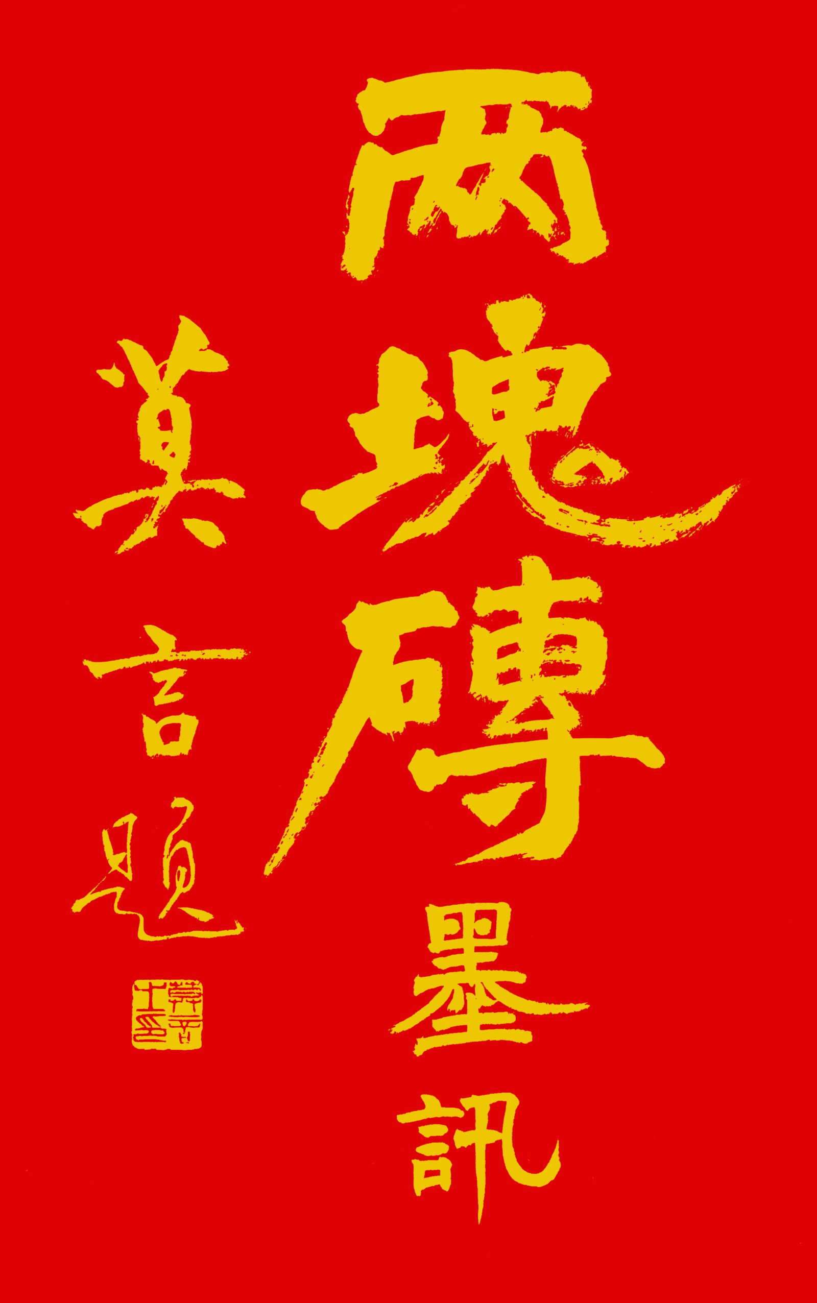 (香港文匯網記者秦占國、張寶峰報道)2022年1月16日,「兩塊磚」登出最新「墨訊」——《安陽學字 殷墟問龜》。其中,有一副對聯曰:「立地頂天一大字,求神問卜倆俗人」。整幅字筆法恣意,文情詼諧。而「倆俗人」正是莫言及其摯友王振的自謔。