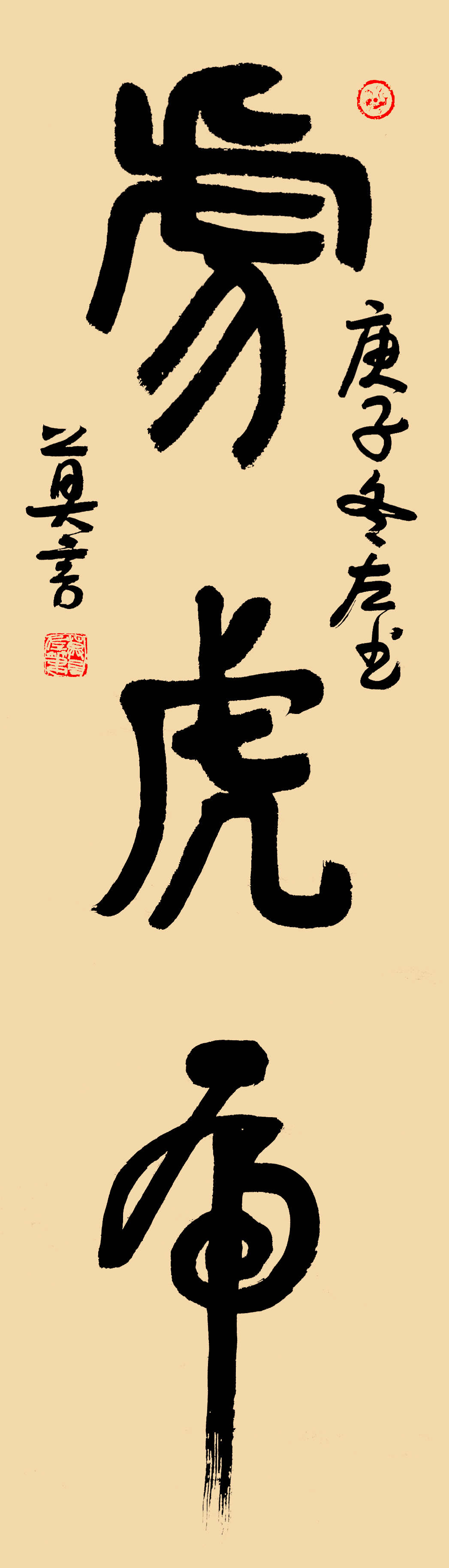 「虎乃猛獸之王,其咆哮呼嘯令星月顫慄、百獸懾服,其威其凶、其狠其殘,自是其形象中本具之義,畫家畫虎,也多是表現這些方面。但虎性中亦有慈的方面,這方面多被文人和畫師忽略。」莫言論到,畫出虎之威,畫師皆能也,而畫出虎之慈,畫師多不能也。