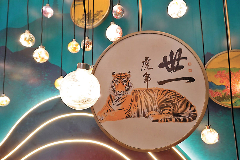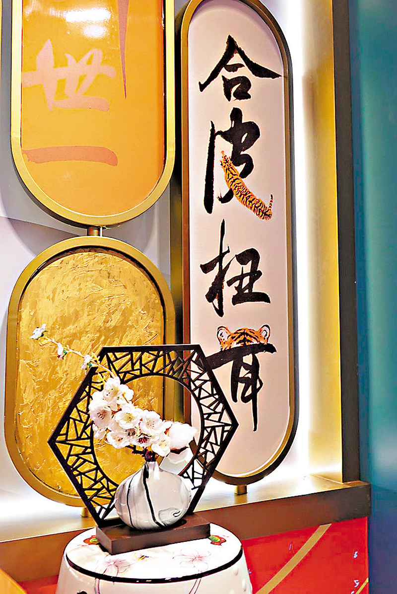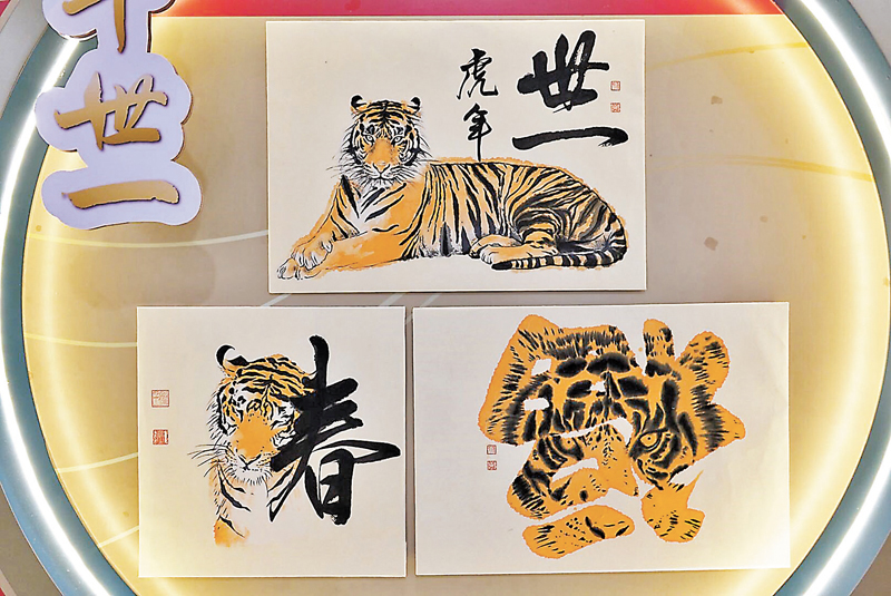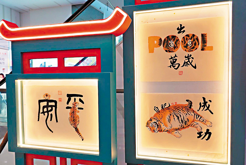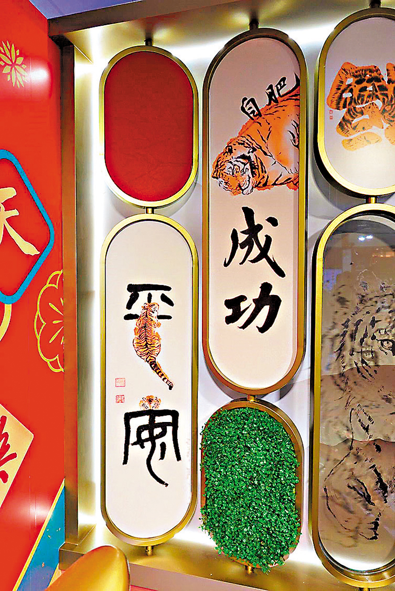 正值新春佳節,藝術家也揮毫弄墨,在紙上繪出應節之虎,配上吉祥話語,開啟全年「虎虎生威」之風!近日,荃灣及元朗有商場正舉辦大型新年活動「水墨『型』虎年世一」,展出香港著名書法家徐沛之為虎年所寫的揮春以及書法水墨作品。現場的水墨揮春牆壁以及夢幻吊燈照耀下的水墨立體裝置,吸引觀眾停下腳步,在輕鬆賀年氛圍中拍照打卡,欣賞藝術家所作另種形式的傳統書畫,一探其中興味。