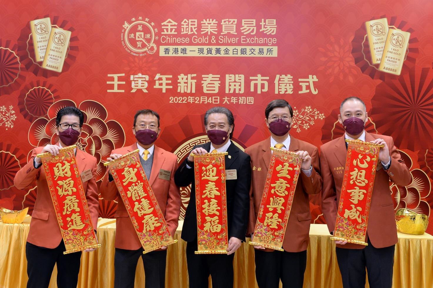 大公文匯全媒體報道:金銀業貿易場今日(4日)舉行壬寅年新春開市儀式,財經事務及庫務局副局長陳浩濂、金融服務界立法會議員李惟宏以及金銀業貿易場理事長張德熙到場致新春賀詞。至於金銀業貿易場虎年九九金第一口成交價為每両16738港元,至於人民幣公斤條第一口成交價為每克36923元人民幣。
