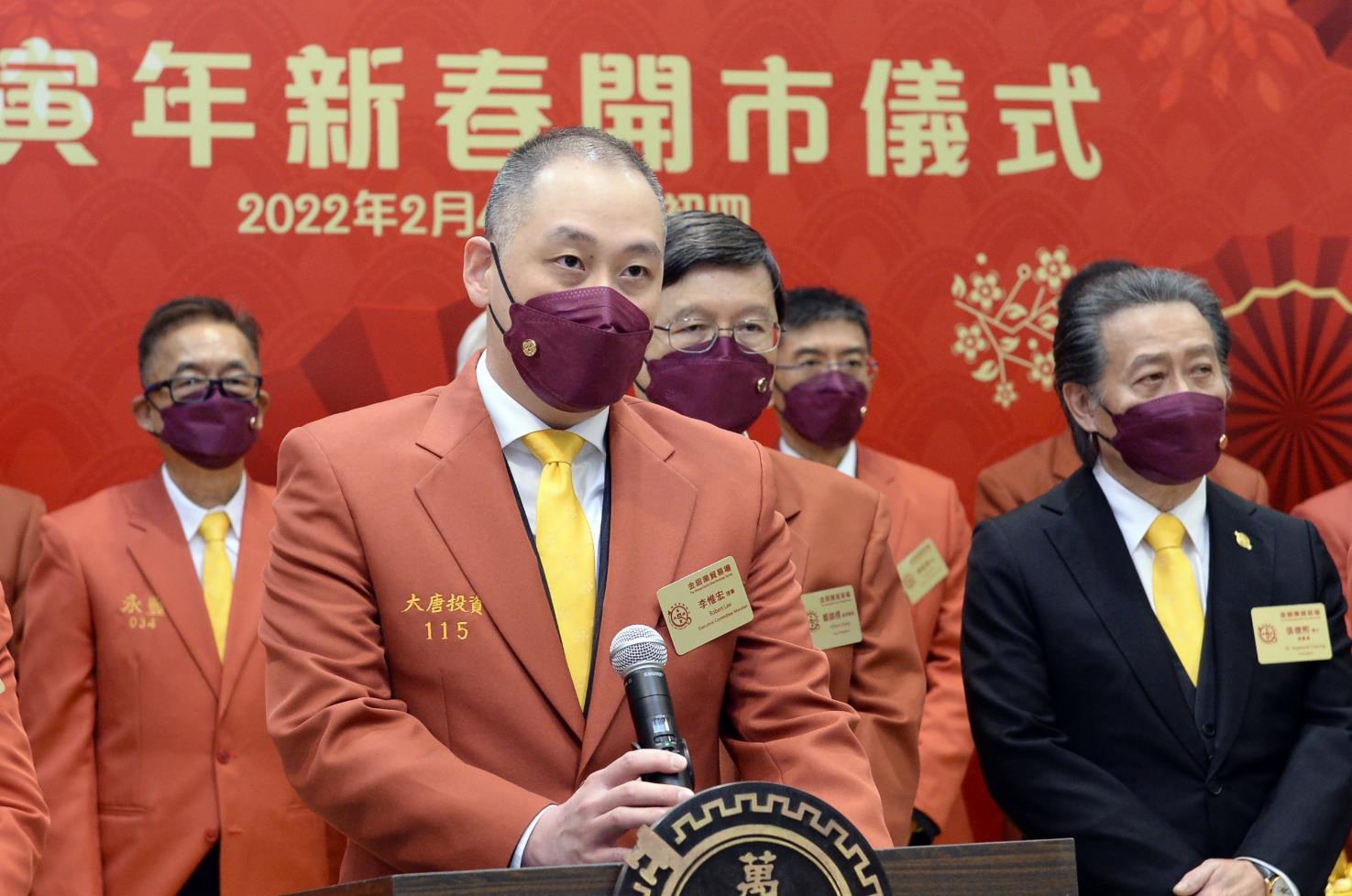 張德熙表示,新春開市儀式一向都是嚴肅、嚴謹,每年新春都會為香港黃金品牌人民幣公斤條和港元九九金於亞洲率先定價,這個第一口金價是別具意義,感謝財經事務及庫務局支持,以及政府鼓勵,使得百多年歷史的貿易場可以繼續往上發展。