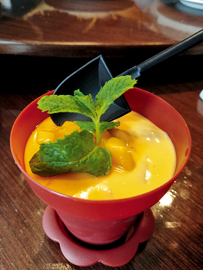 愛吃香口食物的,可以選手撕杏鮑菇,好食到停唔到口;甘筍鹹水角外形超可愛,色香味俱全;雪山叉燒包大廚話每日12點前新鮮出爐,因為即焗的關係很快賣晒,如想吃,早點到或電話預訂。至於餐館特色甜點,除了大廚Dicky得獎作品外,芒果布丁亦很有特色,看花盆造型加上小鏟子夠吸睛,用了兩種芒果製作布丁個糊,又要過濾三次,香滑好食!