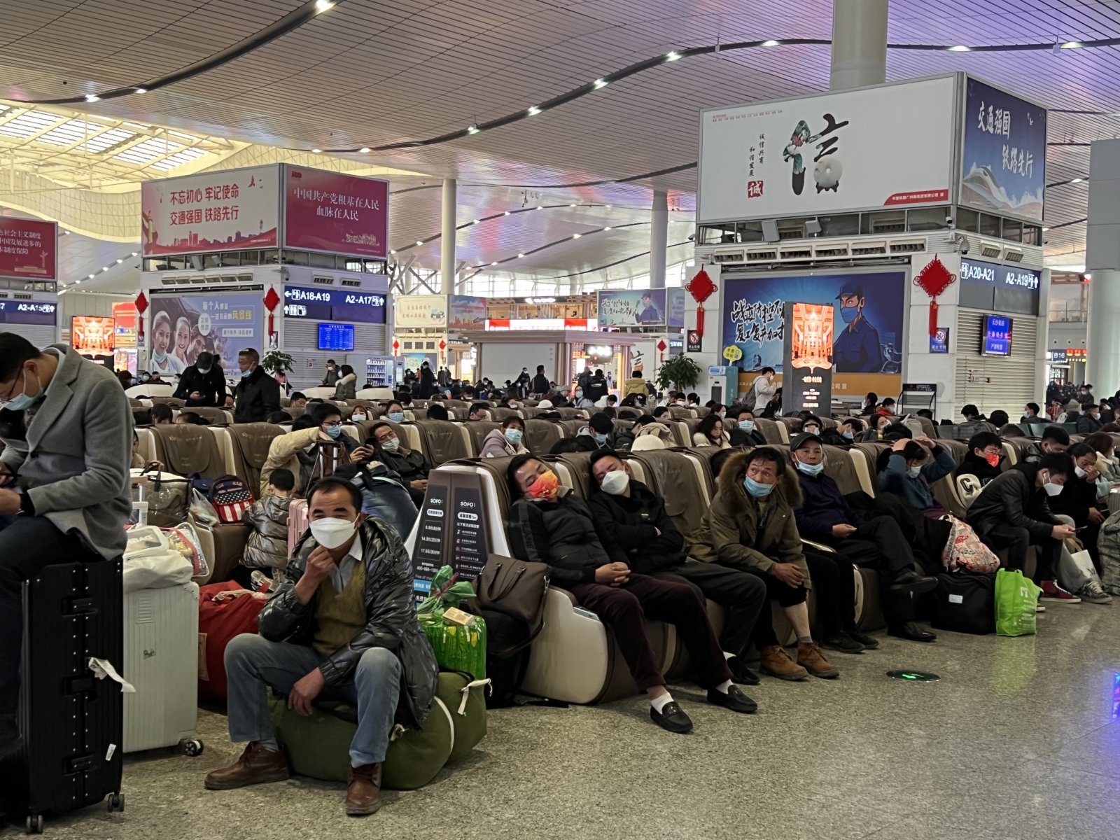 為強化疫情防控措施,廣東省內各車站嚴格落實通風換氣、衞生保潔、日常消毒等衞生管理要求,增加自動售票機、候車座椅、電梯扶手等重點部位消毒頻次。廣鐵透露,2月7日(年初七),由長沙開往廈門、南京、汕頭、深圳,由張家界開往廣州、滬寧杭,由潮汕開往廣深等方向的旅客列車尚有少量餘票。
