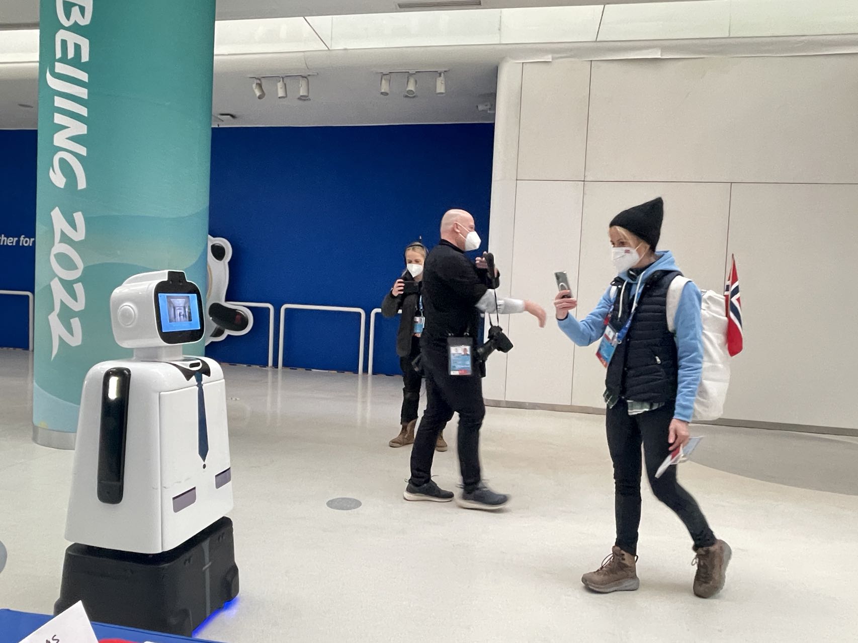 正在北京冬奧賽場工作的服務機械人笨小寶,因近日一段用純正英語提醒一位來參加冬奧會的運動員「Please wear a medical mask (請戴上你的醫用口罩)」火上了內地熱搜。這款智能服務機械人也是這屆北京冬奧會「無處不在」的「科技感」之一,目前在北京「冰立方」已有3台「笨小寶」在崗執勤,負責運動員休息區、觀眾區和媒體區的巡檢、測溫等工作,每天巡邏面積可達約6萬平方米。去年10月就入圍服務冬奧會測試賽的笨小寶,因為工作表現優秀,它還將為冬奧會服務到4月30日。