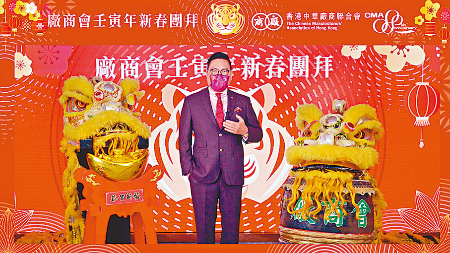 廠商會昨日以錄影形式舉行線上新春團拜,由史立德會長率領立法會代表吳永嘉及一眾副會長,向公眾拜年賀歲。儀式上還表演中式鼓樂,希望以龍威虎震的鼓聲,驅走疫症,在新一年為國家、為香港帶來好運。全國政協副主席梁振英及行政長官林鄭月娥擔任主禮嘉賓。