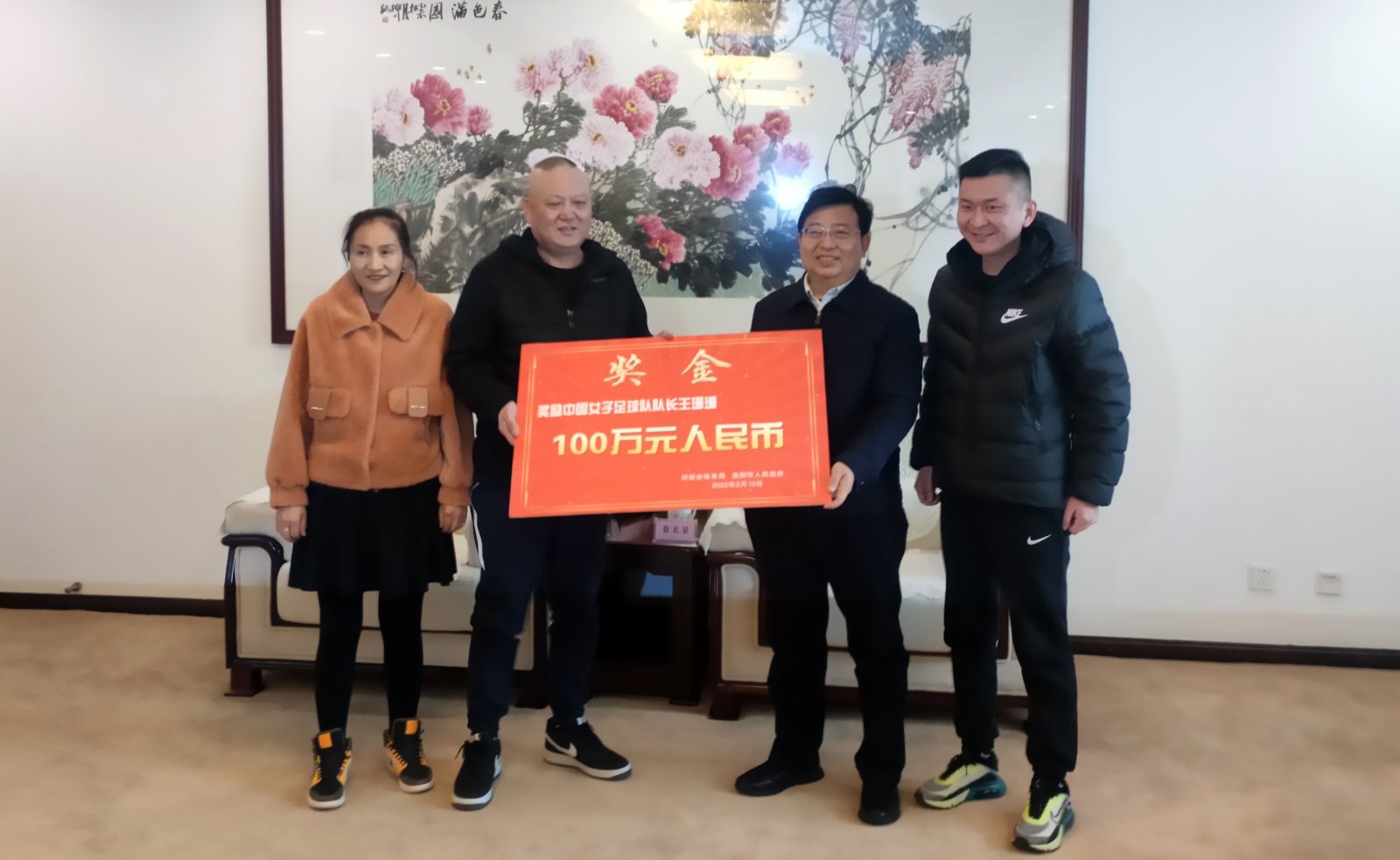 10日分別在洛陽、焦作舉行的獎勵儀式現場上,河南省體育局、洛陽市政府獎勵王珊珊100萬元;河南省體育局、焦作市政府獎勵婁佳惠100萬元。目前,王珊珊、婁佳惠兩位運動員都在省外,獎金由她們的家人代為領取。