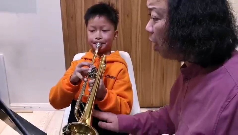 從此之後,全家進入了「備戰」狀態。其實,朱德恩從2021年6月才正式開始學習小號,這半年間每天都保持着半小時至一小時的練習時間。但自從接到了入選開幕式的消息後,他的練習時間和難度被大幅拉高,最長一天可練習4個小時。「恩恩2、3歲開始畫畫,4歲跟着奶奶學習鋼琴,去年開始練習小號。」