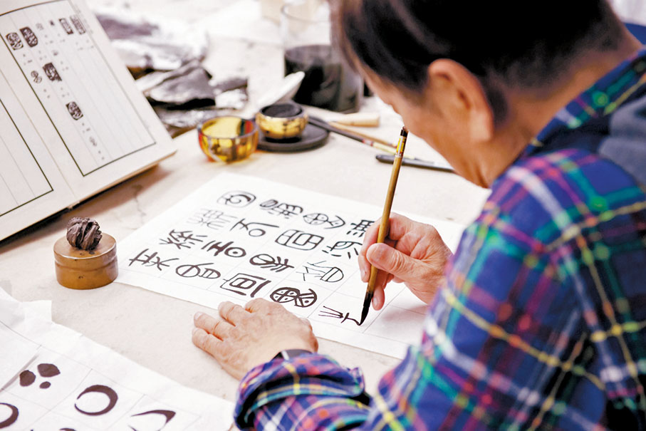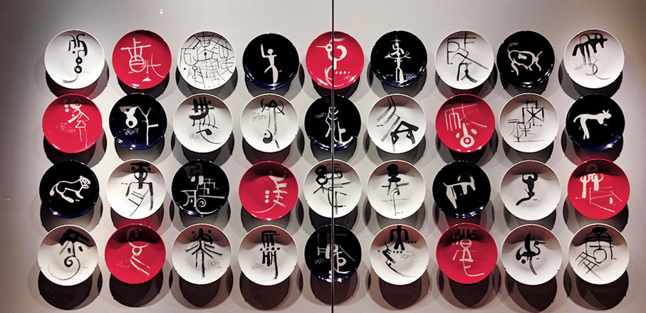 第二單元「觀其全,知其通」則圍繞韓美林收集、臨摹、篩選、研習為線索,展出韓美林的手稿、筆記、陶瓷刻盤等,呈現韓美林爬梳剔塊的浩大工程與深厚積澱。充分展現天書藝術中「一義多字、一字多義」的多樣變化。