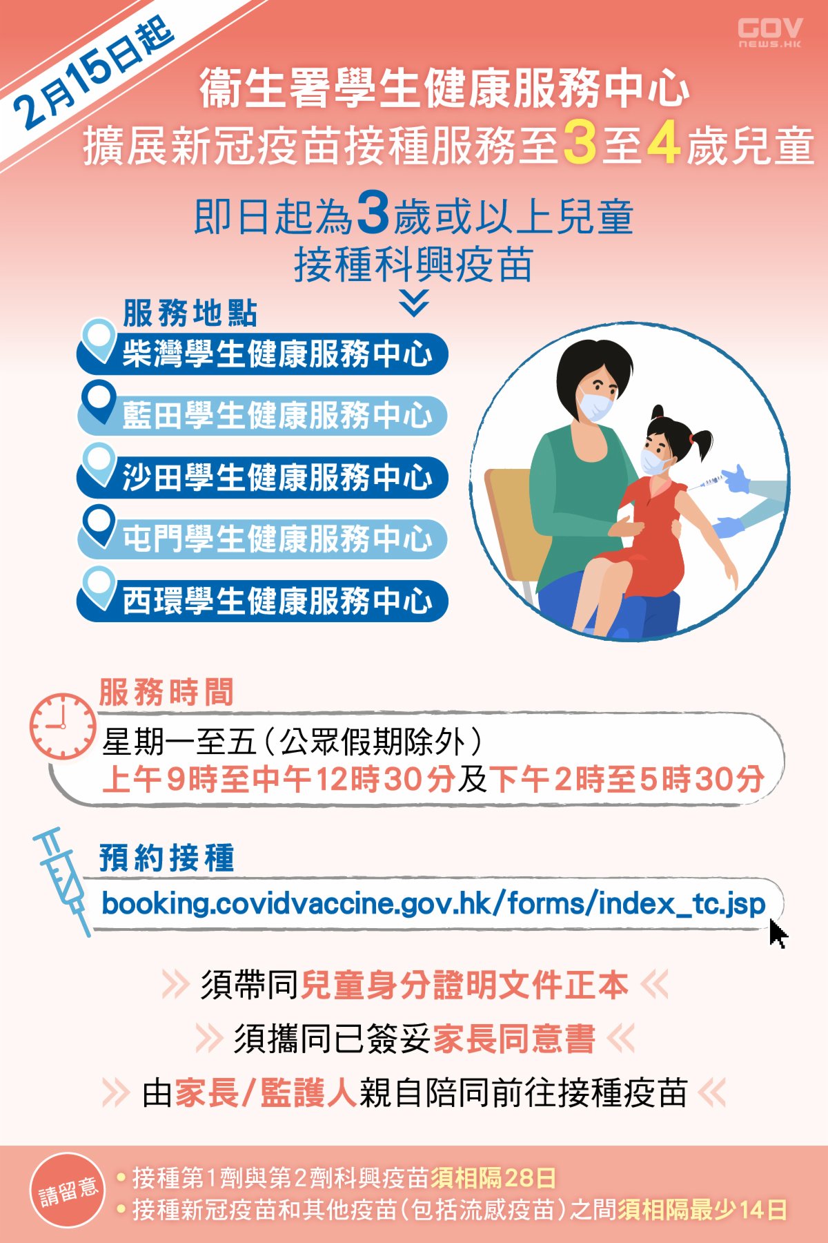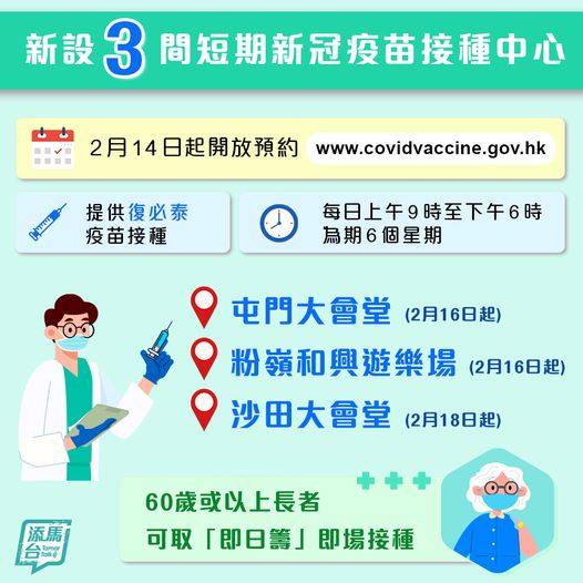 政府今日(17日)公布,將於2月23日起在香港中央圖書館增設社區疫苗接種中心,專為3歲至17歲人士和60歲或以上人士提供科興疫苗接種服務,下周一(21日)上午9日起可網上預約(點擊預約)。