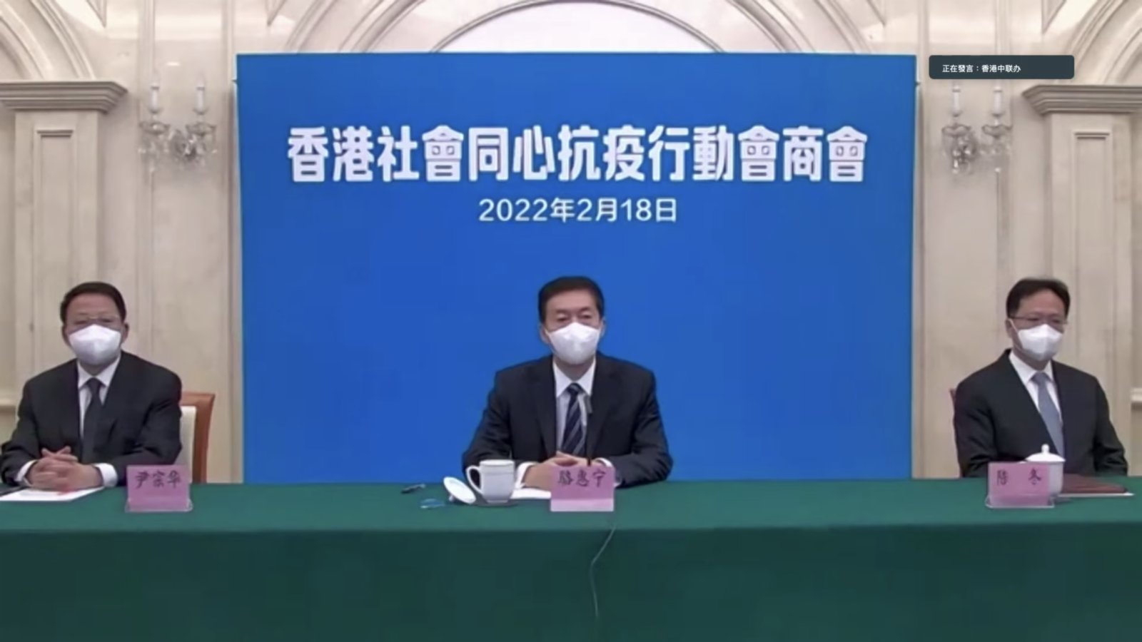 據中聯辦網站消息,2月18日下午,香港社會各界同心抗疫會商會在港舉行,香港中聯辦主任駱惠寧主持並講話,香港特區政府政務司司長李家超,中聯辦副主任陳冬、尹宗華,以及社會各界代表人士通過網絡視頻參加。會議認真貫徹習近平總書記對香港抗疫工作的重要指示精神,號召社會各界團結一致、同心抗疫,會商謀划了支持特區政府防疫抗疫的16項舉措。