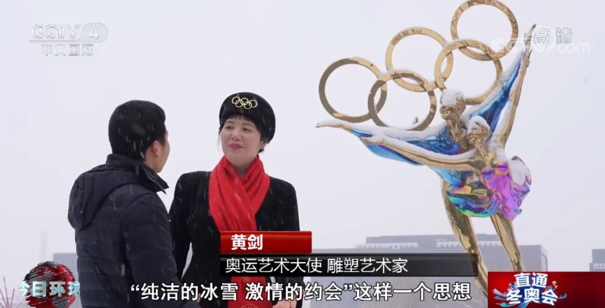 奧運藝術大使 雕塑藝術家 黃劍:他們兩個人在冰雪之上和諧共舞,一起飛向美好的未來,就是體現了冬奧會的理念,「純潔的冰雪,激情的約會」這樣一個思想。