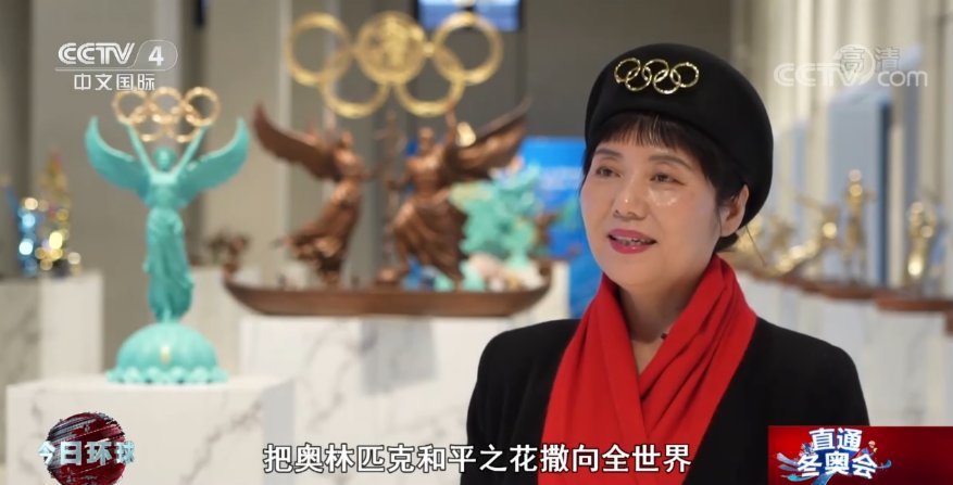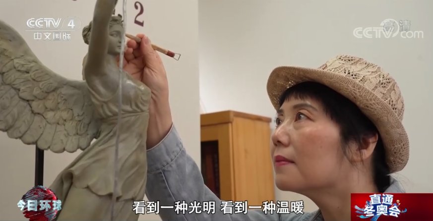 奧運藝術大使 雕塑藝術家 黃劍:奧運女神舉着奧運聖火,就像一盞引領人們走出新冠疫情黑暗隧道的這樣一盞明燈,那麼她一定是要很高昂的,看到一種光明,看到一種溫暖,看到一種和平和友誼。