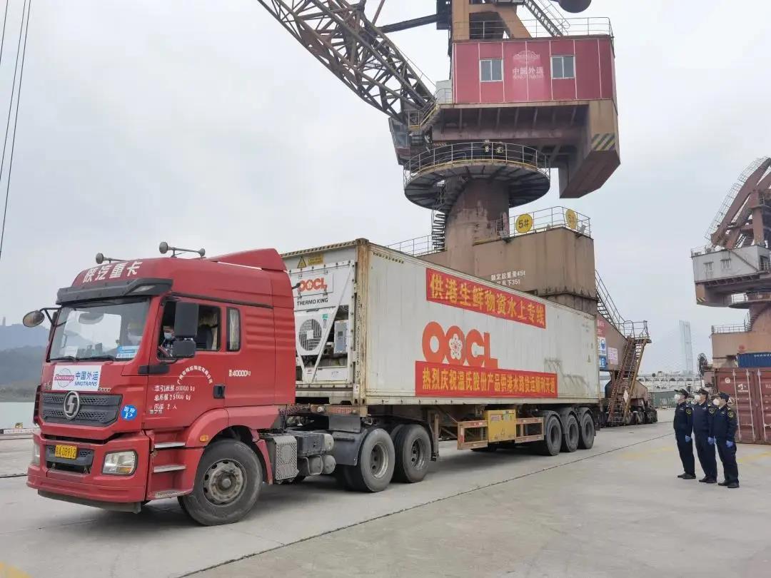 招商局旗下中國外運利用物流供應鏈優勢,積極踐行央企擔當,快速響應市場需求,協調各方力量保障香港民生貨物供應鏈暢順,成功開闢了供港民生物資水路運輸快速通道。