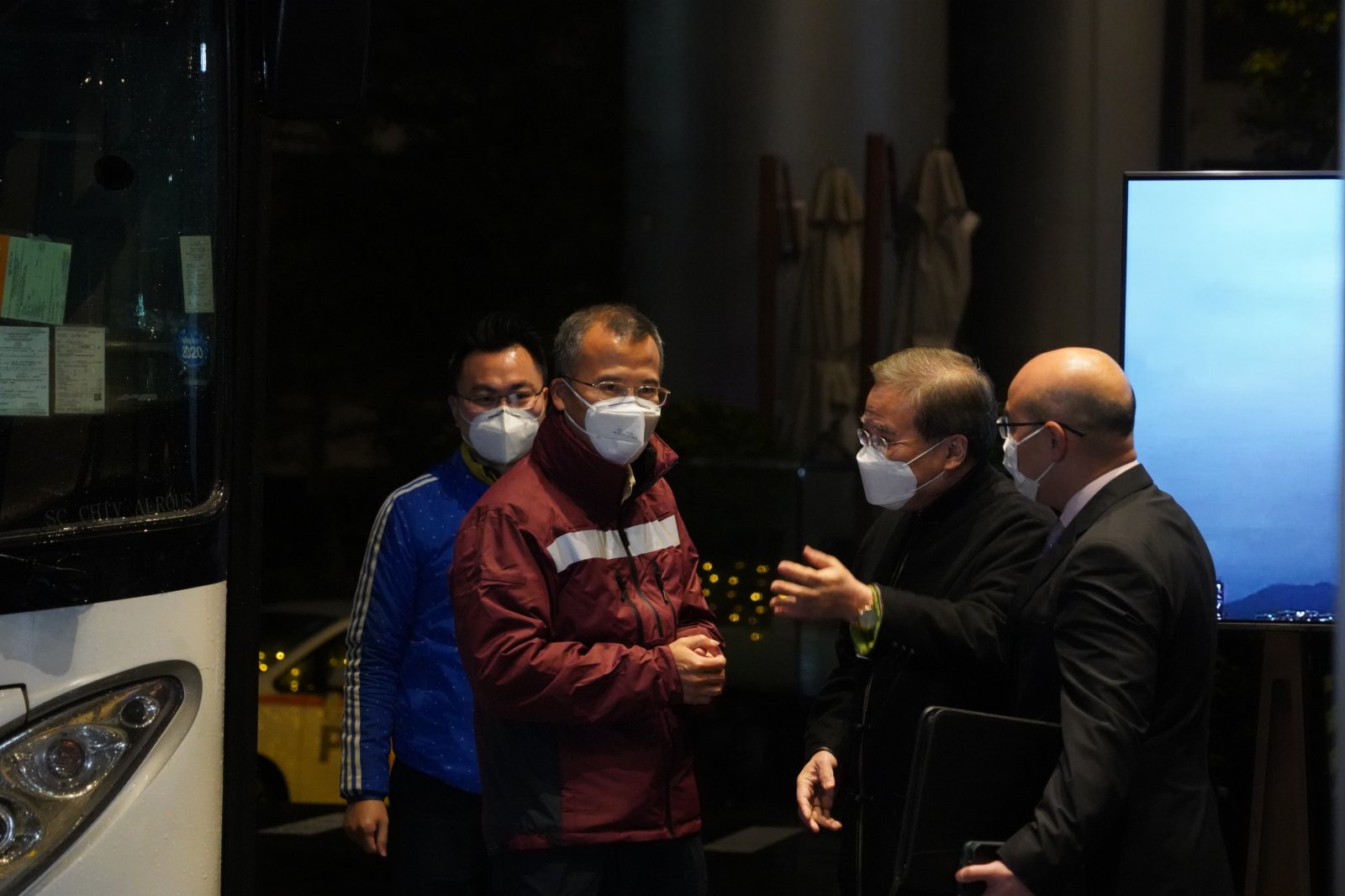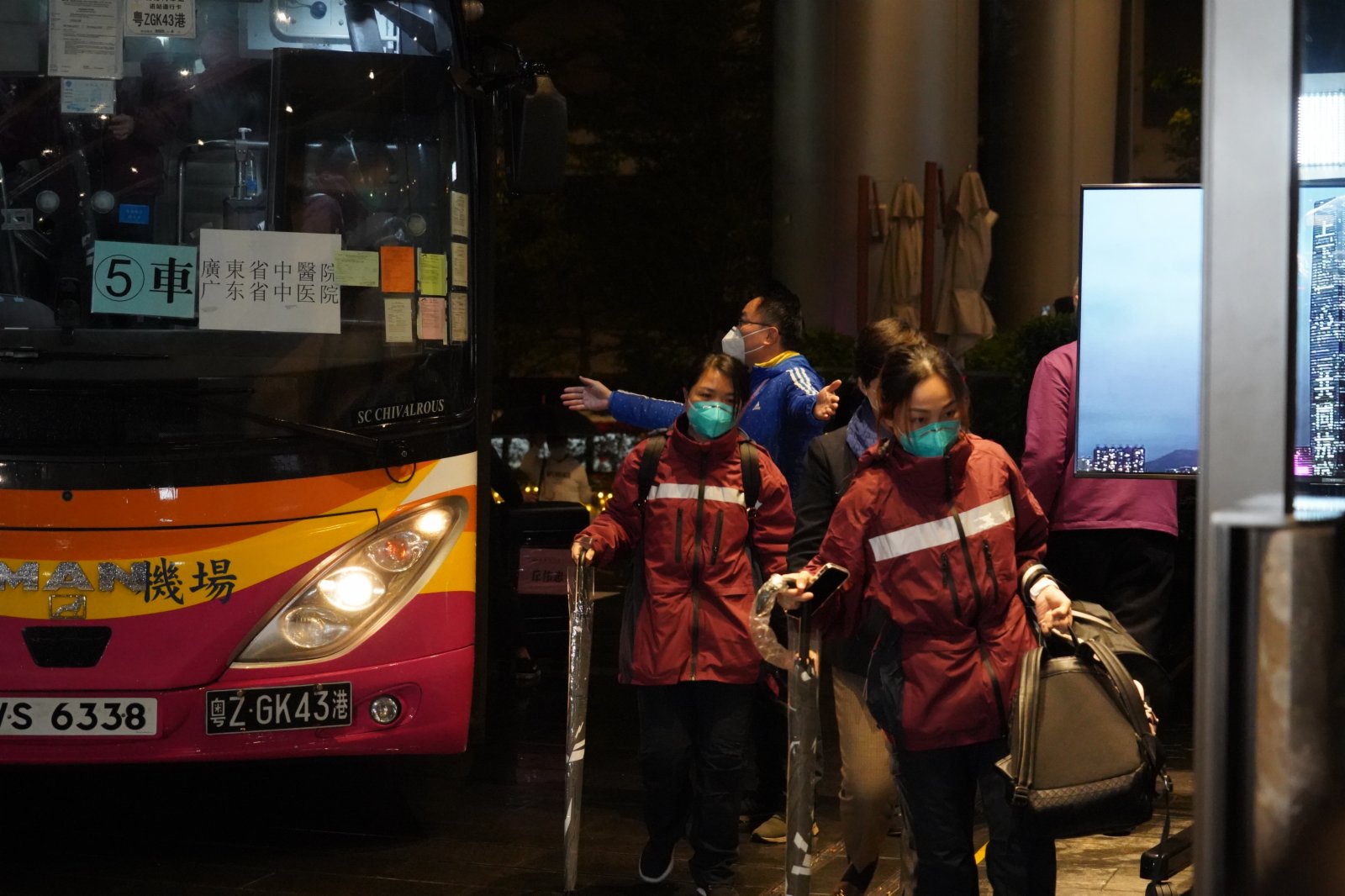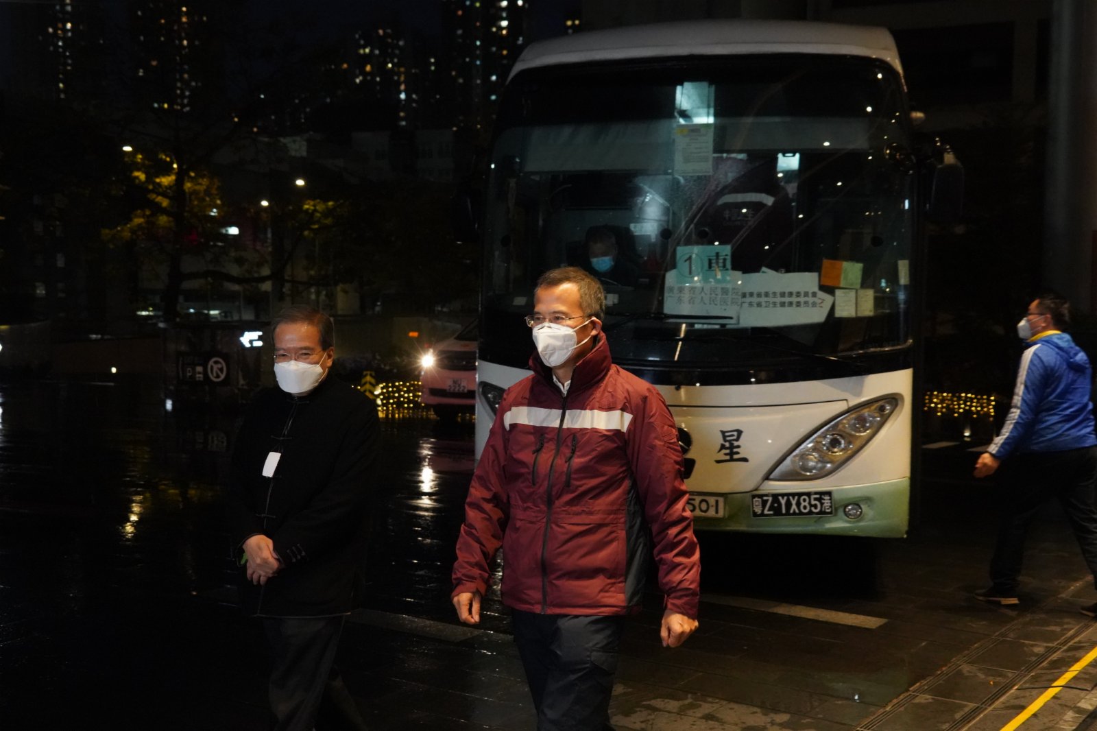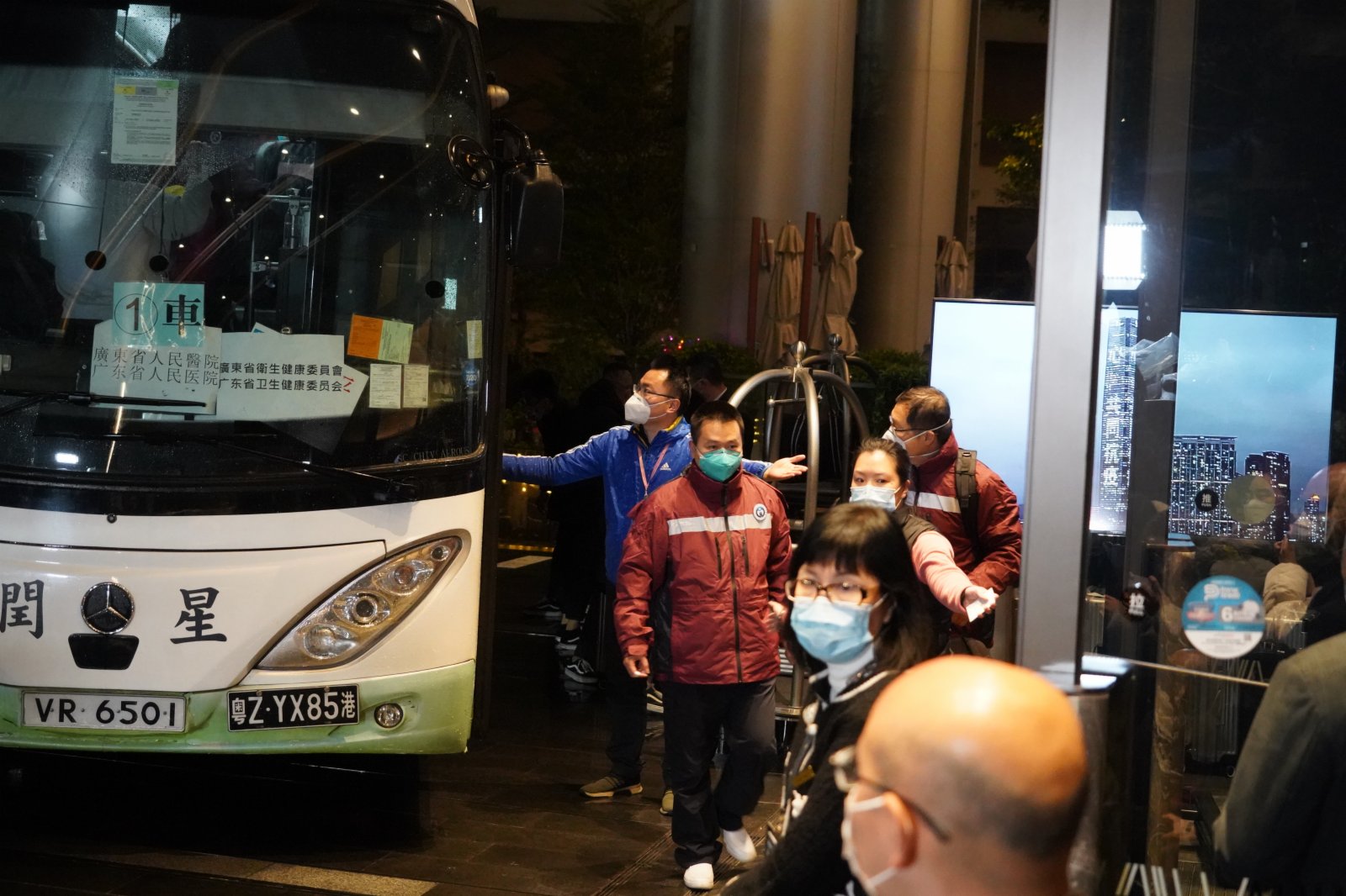 (大公文匯全媒體記者楊新雨報道)本港第五波疫情爆發,在中央關心關懷下,內地專家組、核酸檢測車等人員、物資陸續抵港,協助香港防疫抗疫。第二批內地援港抗疫醫療防疫工作隊今日(19日)下午約6時40分,抵達香港沙田石門帝逸酒店下榻。全體隊員共114人,包括管理人員4人、重症醫學專家4人、採樣隊員106人。