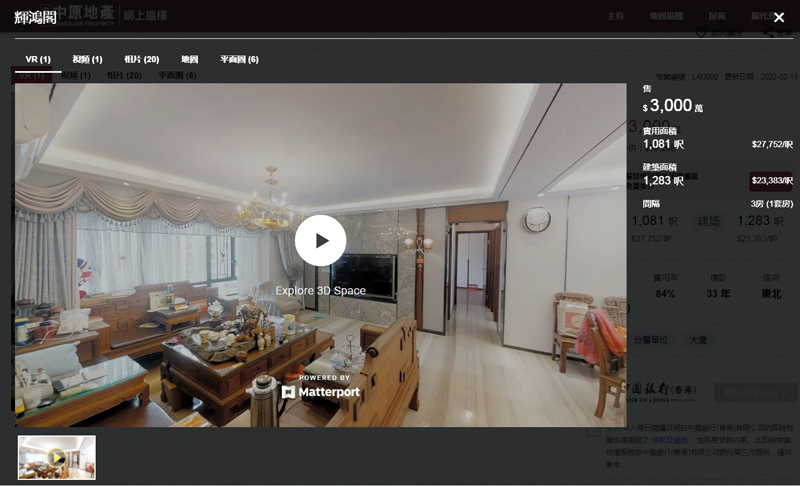美聯集團旗下美聯物業住宅部行政總裁(港澳)布少明指出,美聯持續投資房地產科技,早於2016年,美聯已經引進VR虛擬實景導覽技術。近日美聯集團與Matterport簽訂策略性合作協議,藉着Matterport嶄新的「數碼孿生」技術,美聯的客戶可以在虛擬樓盤空間中進行家居布置及設計,構建理想居停,甚至直接購買合心水的傢具。美聯相信是次合作,可加快全面引入Matterport的領先技術,提升客戶的線上體驗,亦可推動行業進入空間數據科技新領域。從Matterport中引入的Digital twin技術已經投入首階段的試用及系統測試,預計今年內,部分美聯筍盤已經可以投入應用,主要提升拍攝功能,以及優化客戶的線上睇樓體驗。