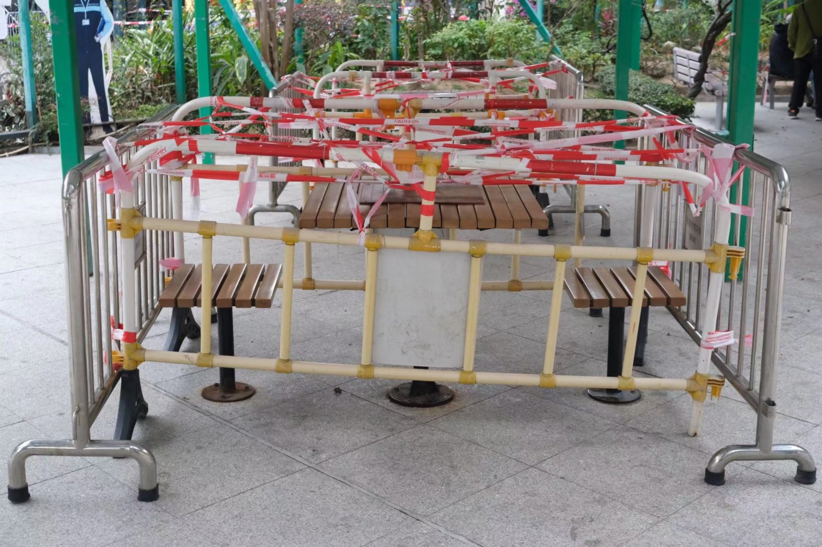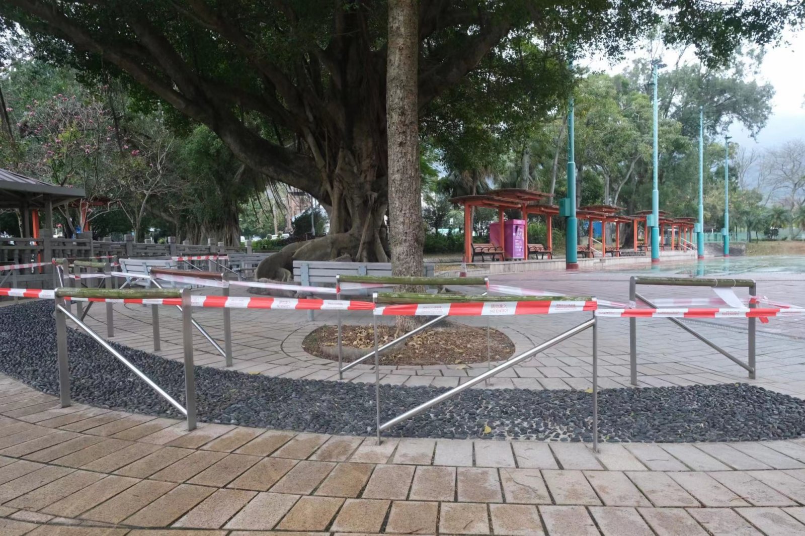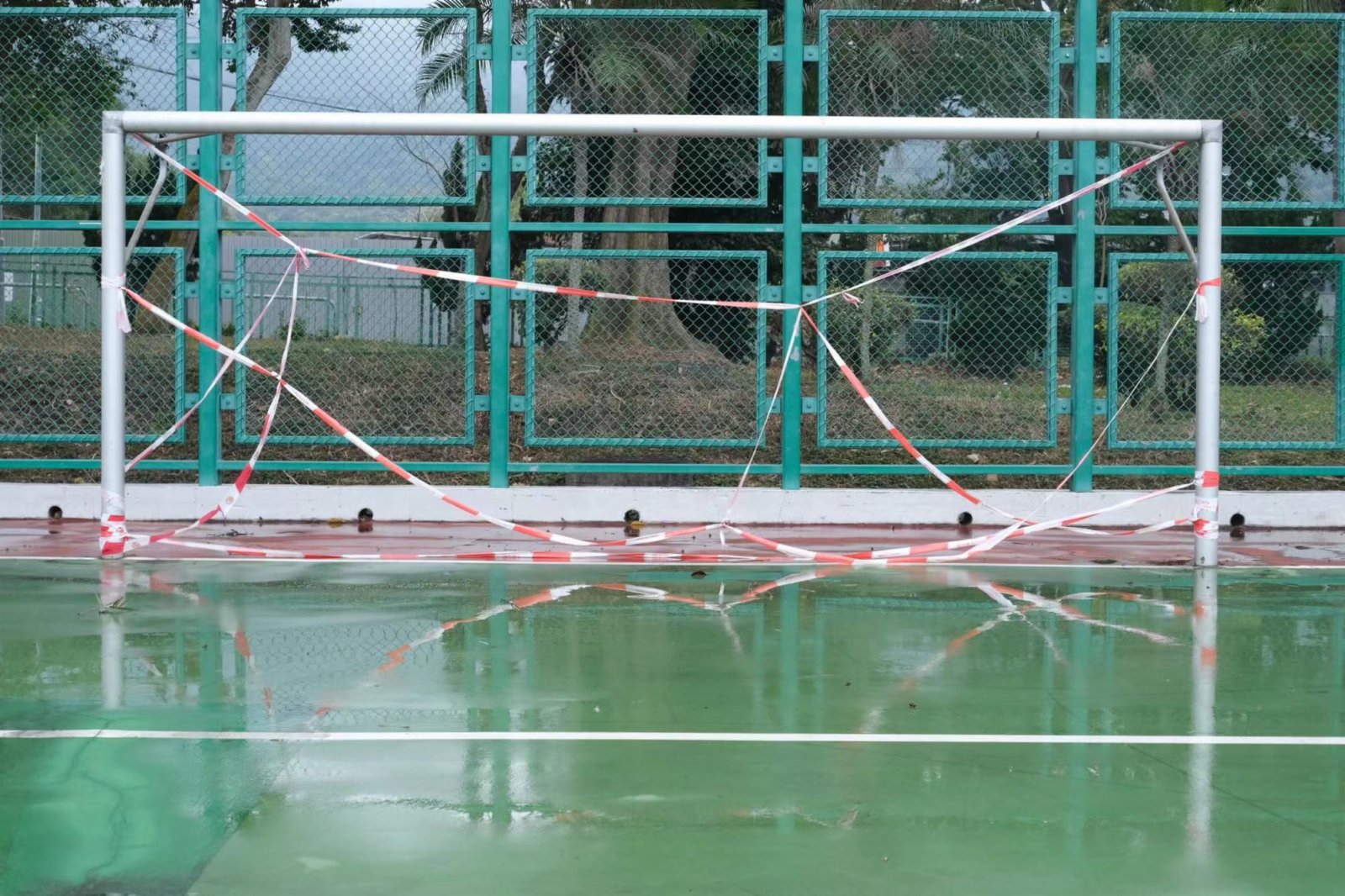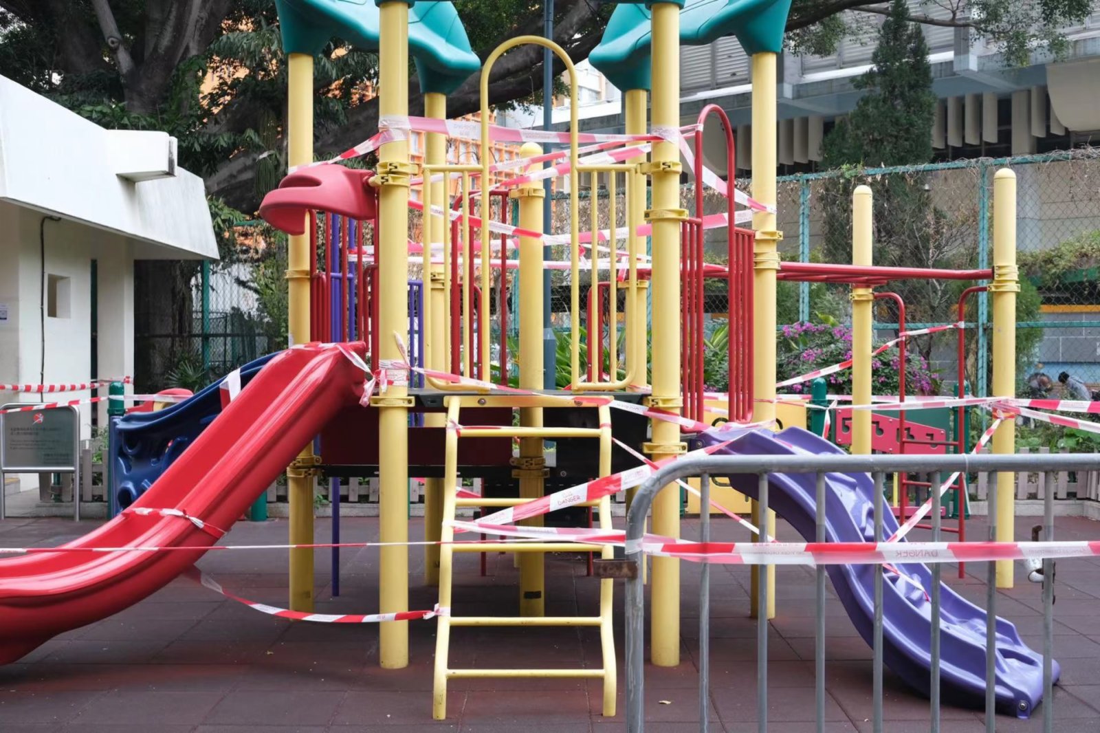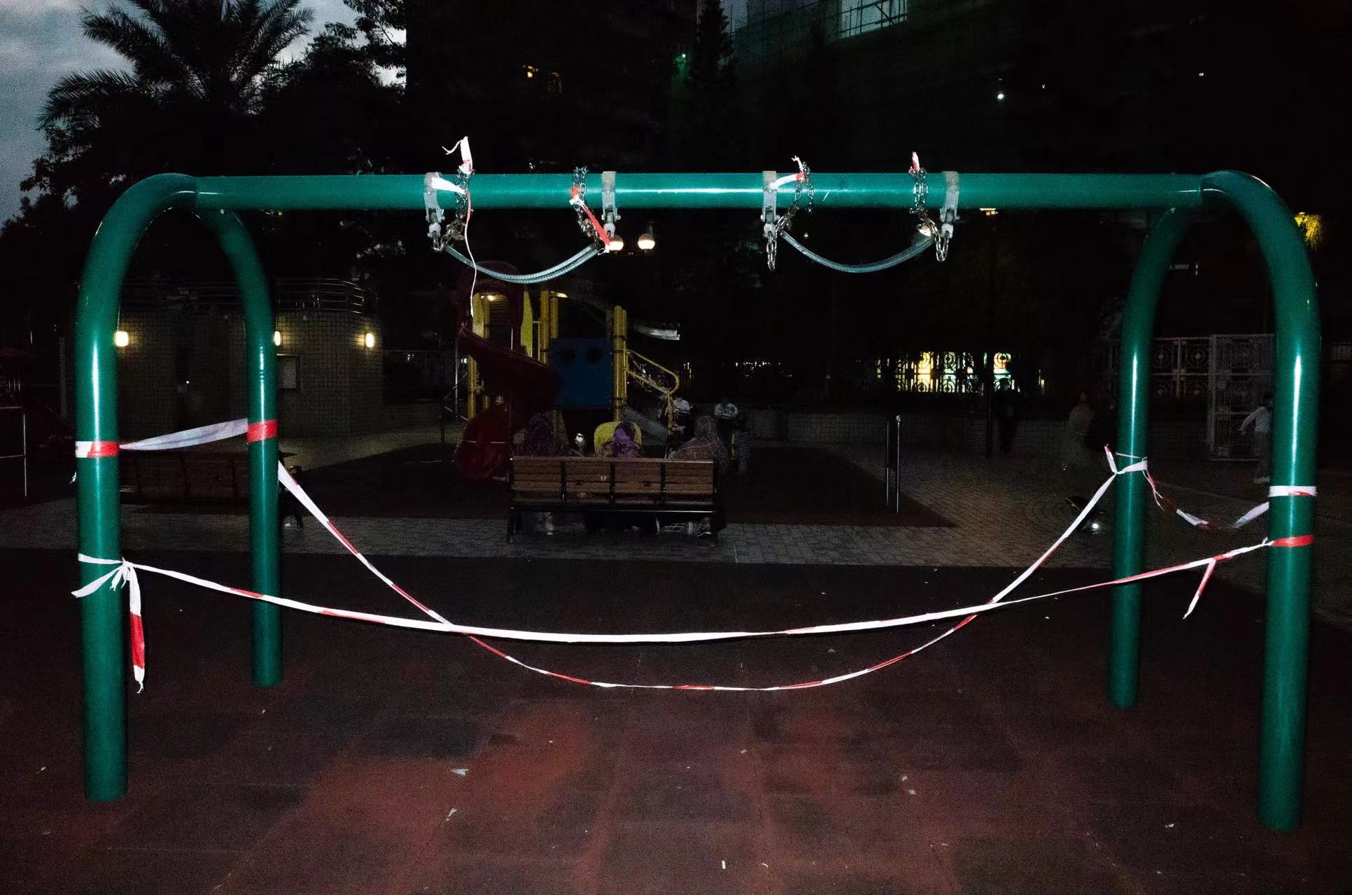 大公文匯全媒體報道:第五波疫情進一步爆發,全港市民都需要盡量減少外出、團結抗疫,不少政府轄下的遊樂、康樂設施都需要圍封。點新聞記者近日走訪全港各區的康樂場地,拍攝了一些圍封設施的現狀;康文署職員利用膠帶等圍封所有設施,在記者鏡頭下,這些圍封設施儼如一種「另類的藝術品」。