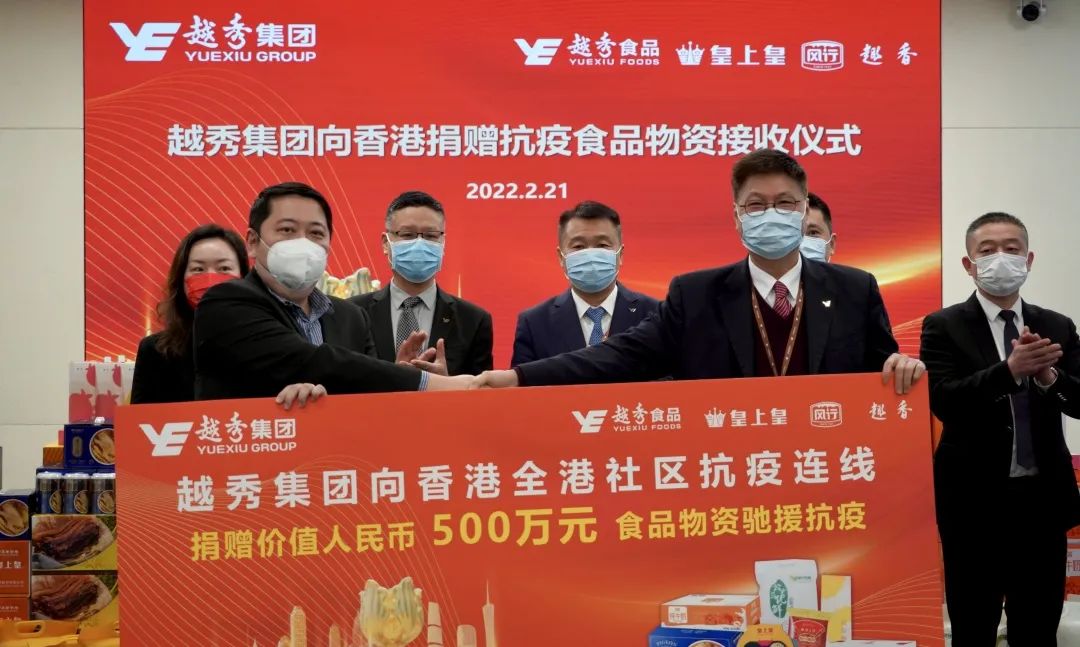 越秀集團是全國在港資產規模最大的地方國有企業及廣州市駐港企業,早前曾向香港基層長者及困難家庭捐贈價值500萬元的智能手機,令到他們可以使用「安心出行」程式便利出行。是次集團向「全港社區抗疫連線」捐贈目前較為急需的食品物資,包括牛奶、臘腸臘肉、自熱飯、大米、餅乾等,均為越秀集團農業食品板塊的「老字號」優質產品。