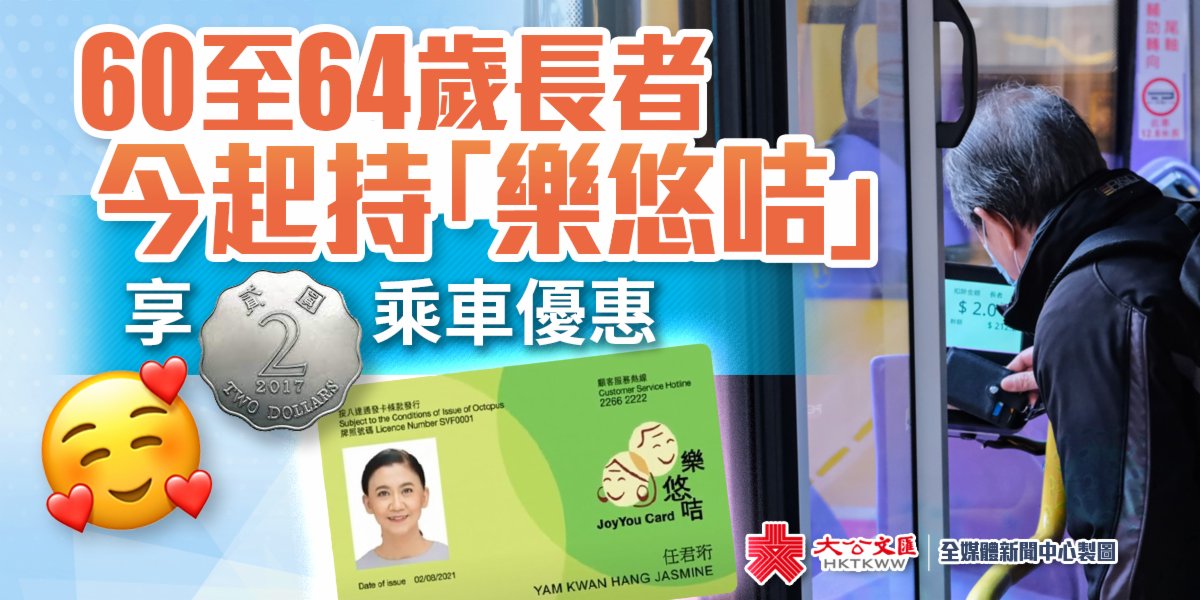 大公文匯全媒體報道:持有「樂悠咭」60至64歲的合資格人士,由今日(27日)起可享用「二元優惠計劃」,優惠涵蓋港鐵、專營巴士、渡輪、電車,以及獲准納入計劃的紅色小巴路線和街渡航線。