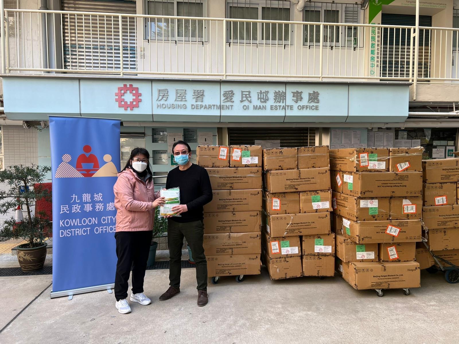 九龍城民政事務處則透過房屋署及物業管理公司,向何文田愛民邨的住戶、清潔及物管員工派發快速測試套裝,供他們作自願檢測。