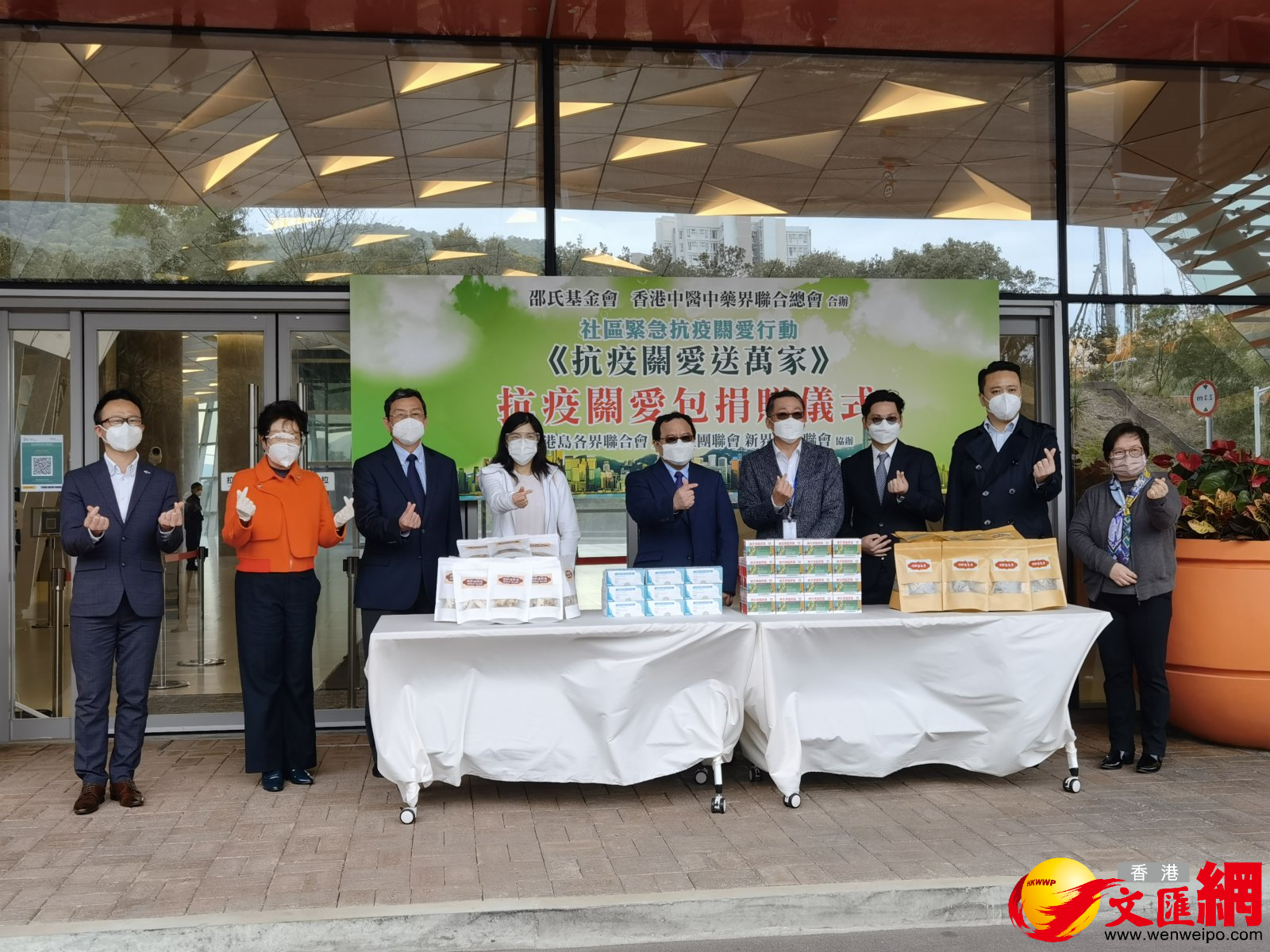 香港中醫中藥界聯合總會此前發動業界籌組「中醫中藥界齊心抗疫行動」,包括遙距義診、抗疫資訊查詢、贈送抗疫藥品湯包等物資、抗疫錦囊短片、抗疫資訊網站等,「抗疫關愛送萬家」是首個贈送抗疫物資的活動,活動其他贊助機構包括香港中醫中藥界抗疫聯盟基金、希瑪眼科醫療控股有限公司、亞輝龍生物科技股份有限公司、泉昌有限公司、正草堂藥業香港有限公司等亦有代表到場見證。