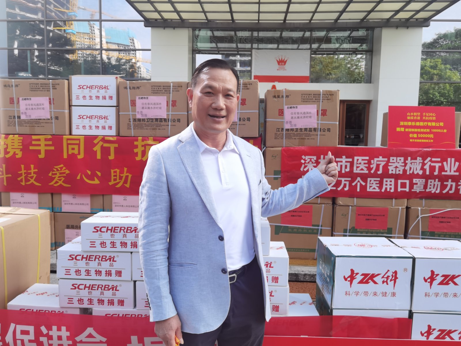 深圳市健康產業類行業協會執行會長黃鶴表示,一共有15家企業積極的參與了這次抗疫的捐贈活動,大家出錢出力,各界都捲了不少的,希望以最快的速度送達到香港。