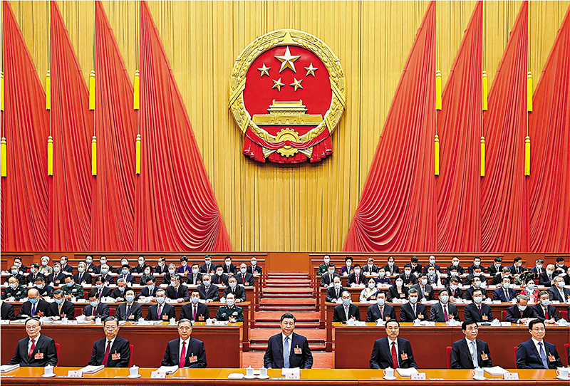 習近平、李克強、汪洋、王滬寧、趙樂際、韓正、王岐山和大會主席團成員在主席台就座。
