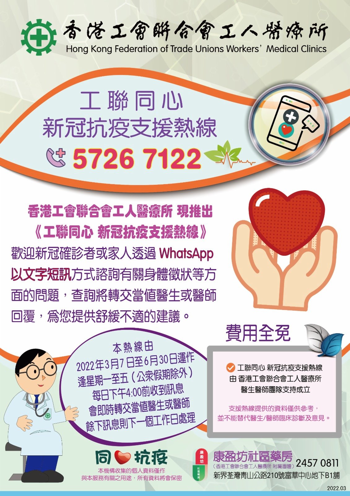(香港文匯網記者陳惠芳報道)香港第五波疫情嚴峻,公營醫療系統不勝負荷。工聯會火速成軍成立了whatsapp平台,並於明日(7日)正式投入服務,接受市民免費問症。