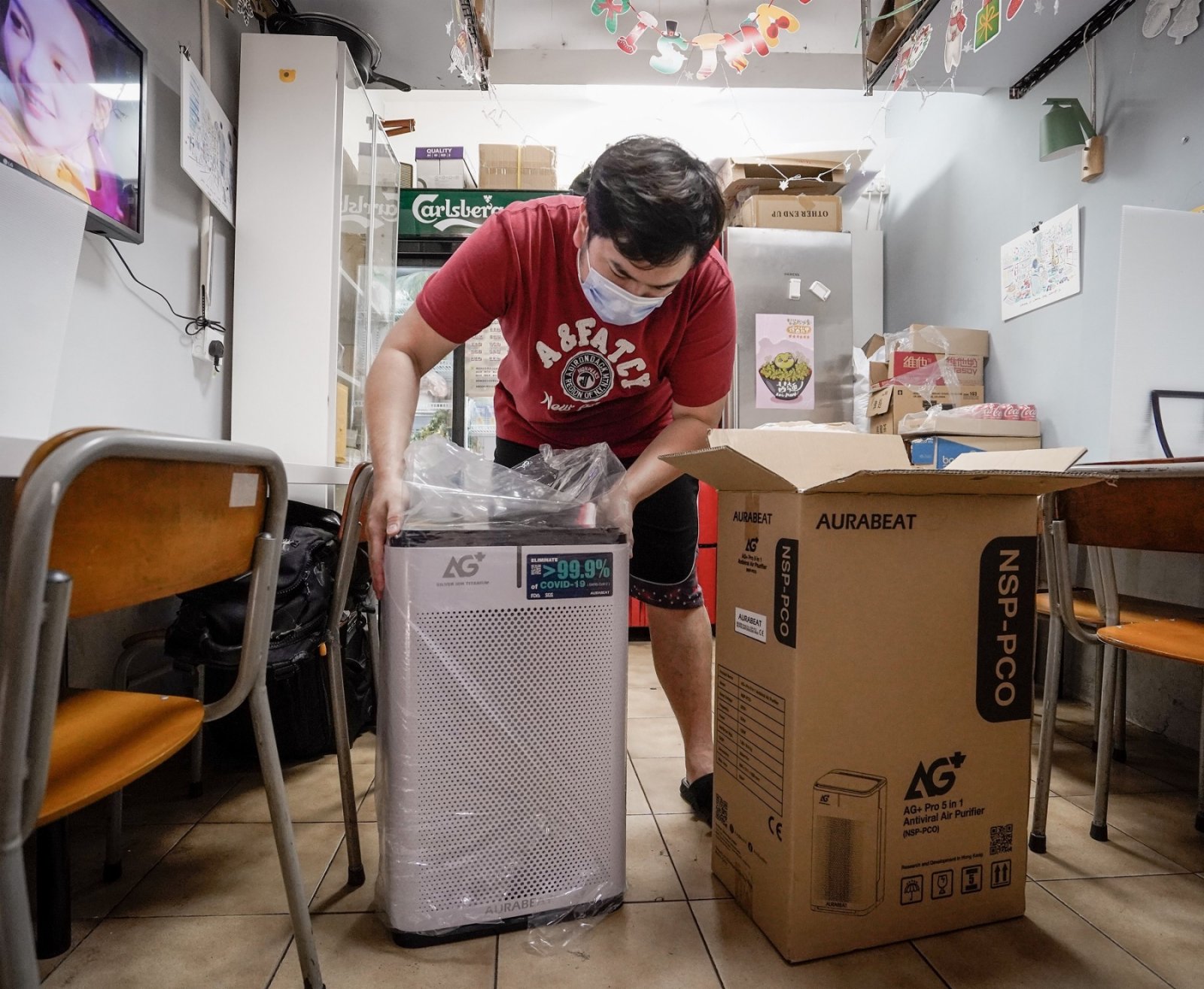 其中一間接受捐贈空氣淨化機的麵店店主Nat指:「在疫情的籠罩下,現已不只是影響商店的生意,更多的是影響着市民的正常生活。我們堅持在疫情期間仍然開店,希望盡力協助區內的居民的生活未至處於停擺狀態,互相支持才能戰勝疫情。感謝希慎在這個時候幫助大家。」