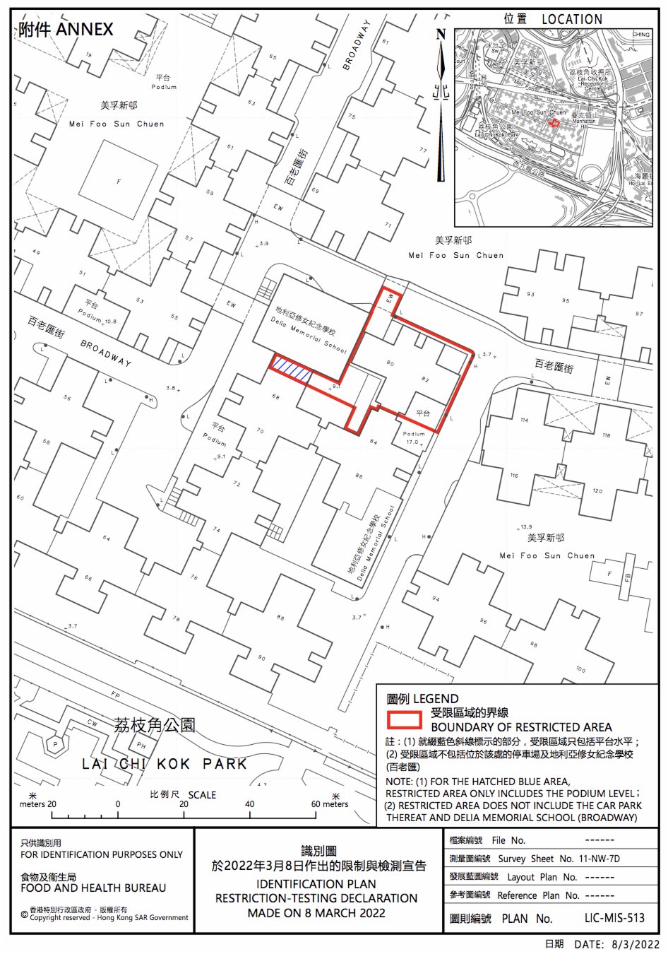 大公文匯全媒體報道:本港第五波疫情持續嚴峻,今日(8日)新增28475宗確診個案。政府自下午6時起,圍封荔枝角美孚新邨第三期百老匯街80-82號(不包括位於該處的停車場及地利亞修女紀念學校(百老匯))、百老匯街84-86號(不包括位於該處的停車場及地利亞英文小學暨幼稚園)進行強制檢測,政府目標是在明日下午約1時完成圍封強檢行動,是否延長視乎檢測結果。