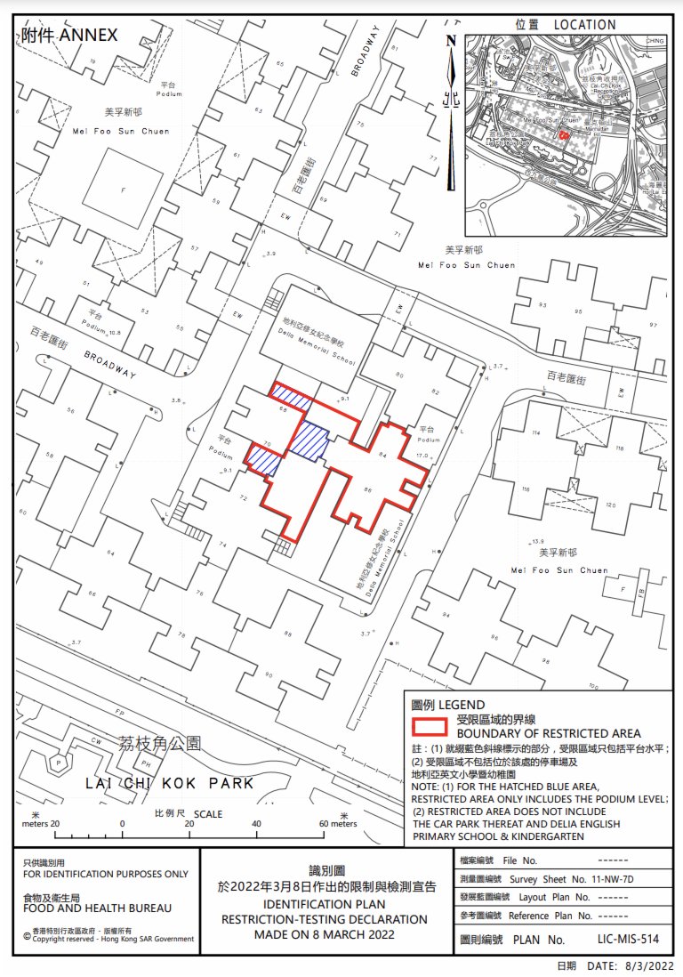 政府發言人表示,由於上述大廈排放的污水樣本對新冠病毒檢測呈陽性,懷疑在大廈內有隱形患者,經評估後相關區域感染風險有機會較高,政府決定就相關區域進行圍封強檢。