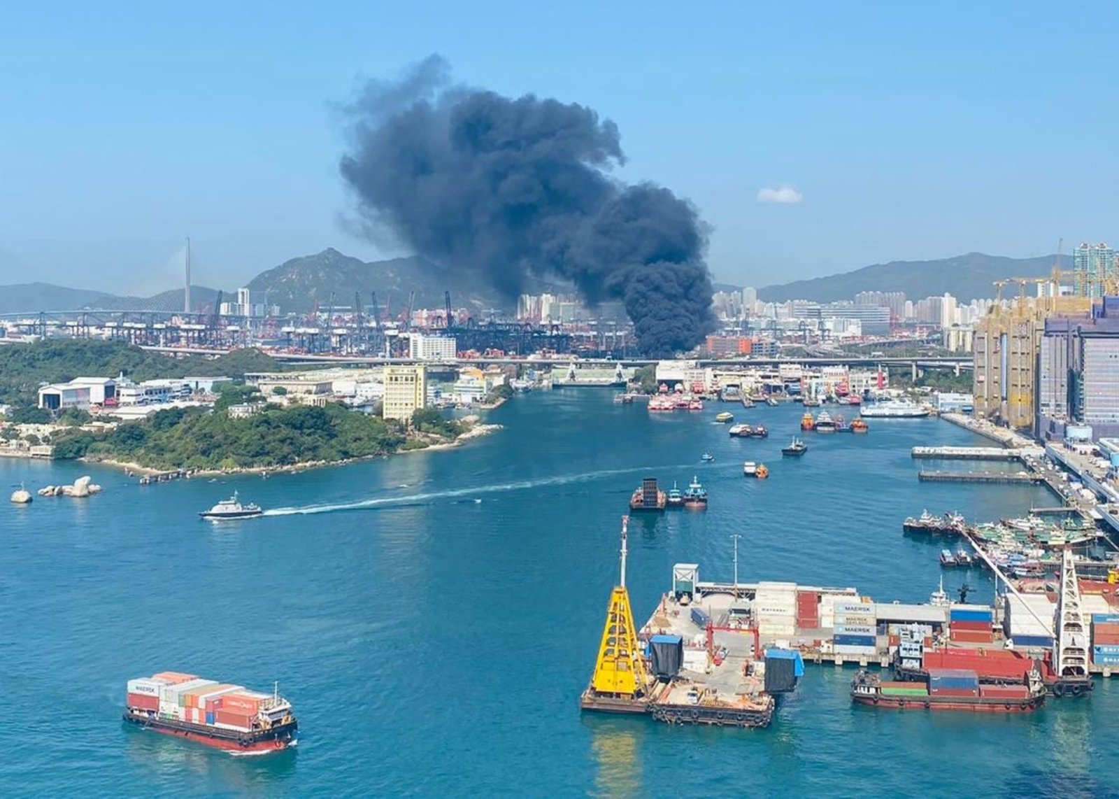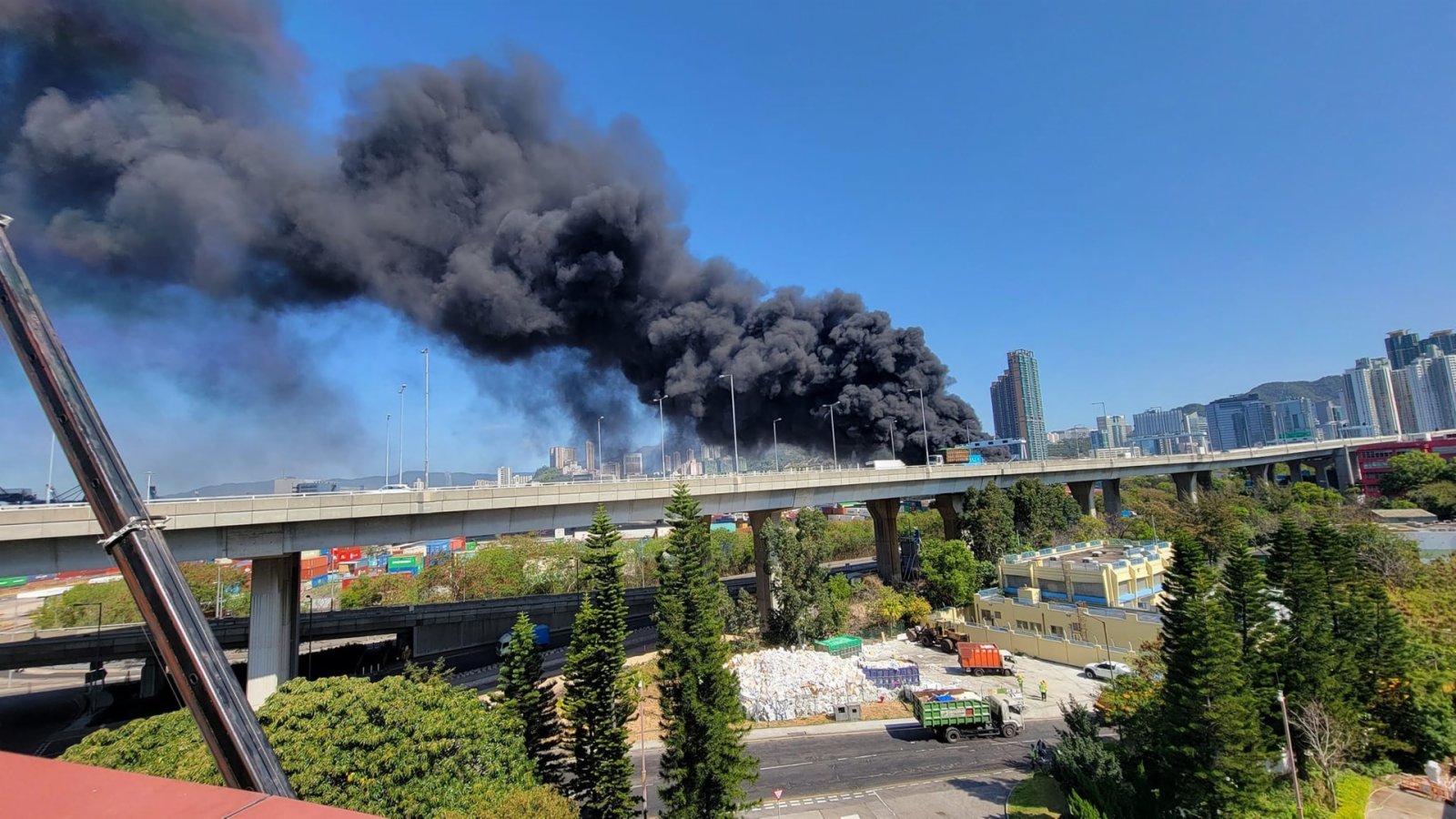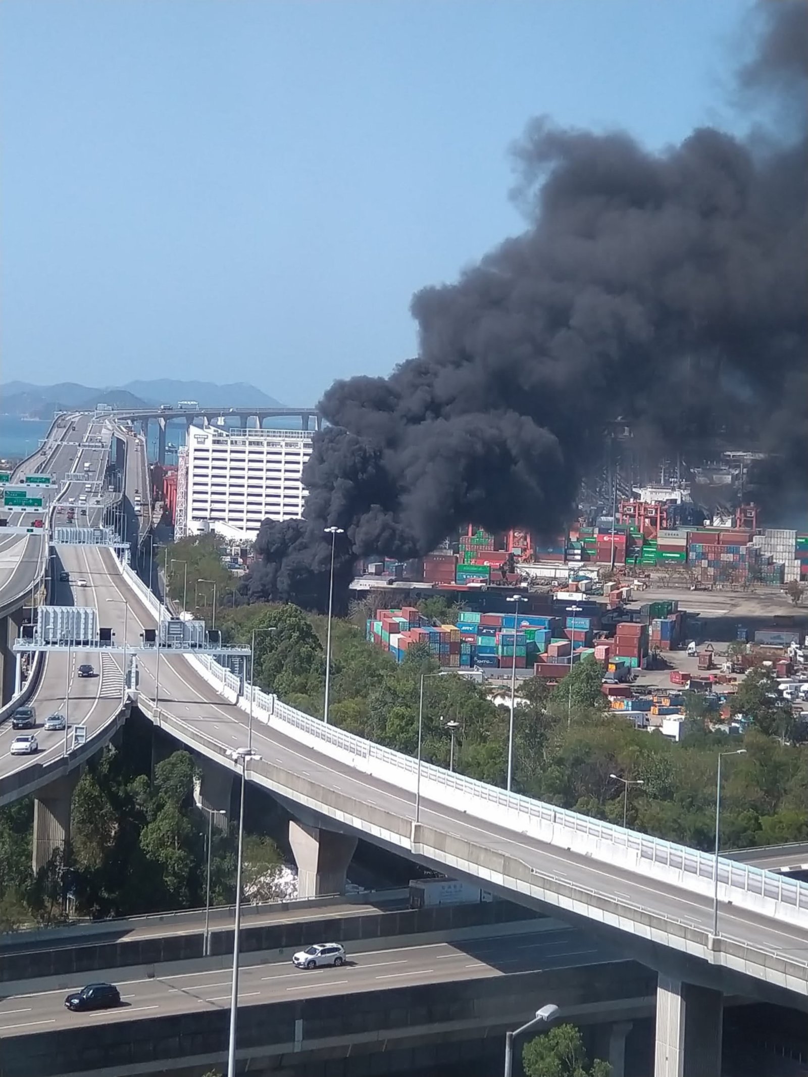 大公文匯全媒體報道:今日(10日)早上約10時20分,葵涌7號貨櫃碼頭,警方接報指一批擺放在路旁的發泡膠箱突然起火,冒出大量濃煙。