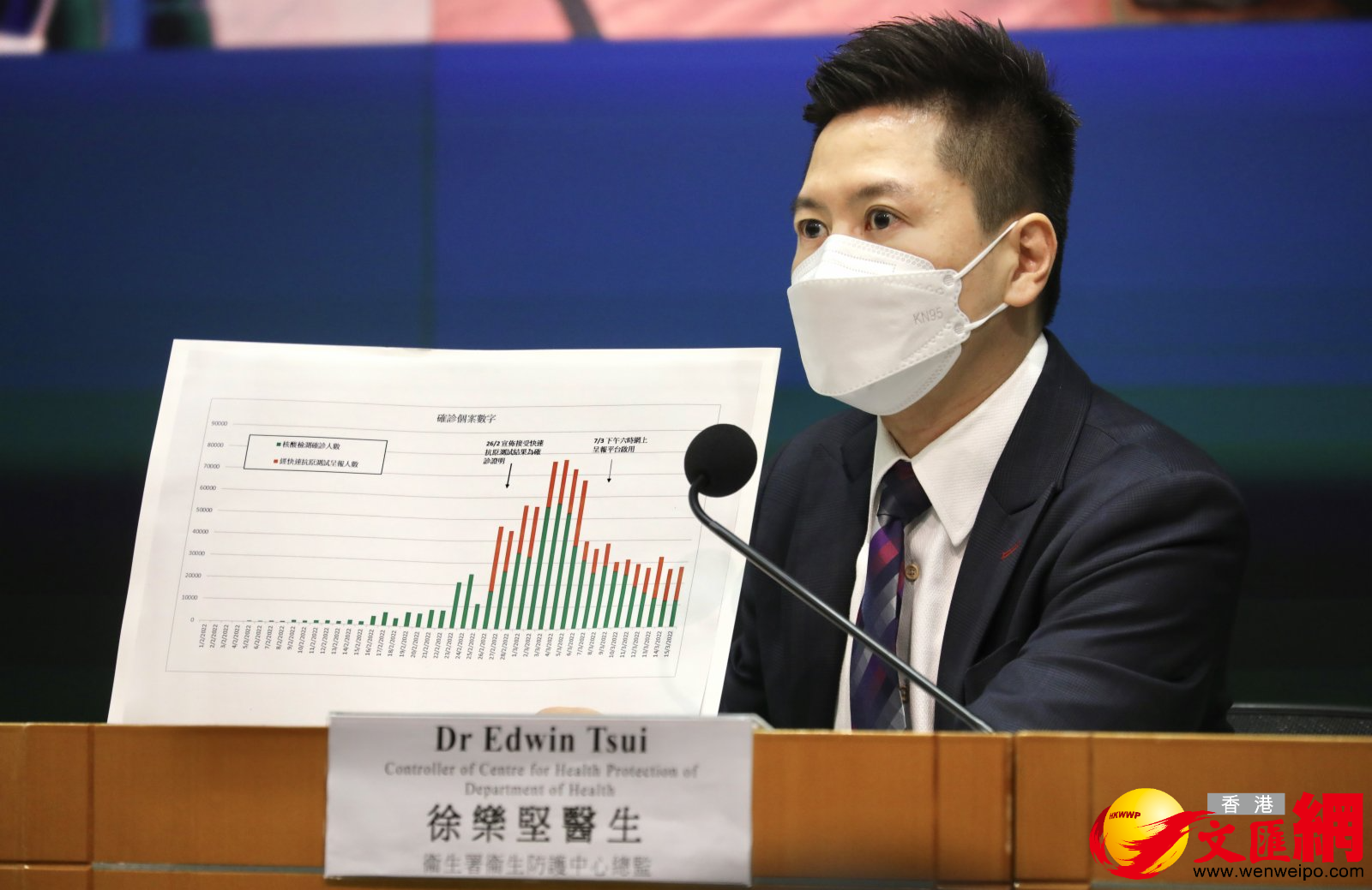 徐樂堅表示,整個第五波疫情確診數量由快速檢測和核酸檢測兩渠道數字呈現,據統計,疫情在2月21至22日開始上升,3月3至4日到達高峰期,達每日7萬宗,過往7日個案穩定接近3萬左右。現時病毒仍處在活躍水平。