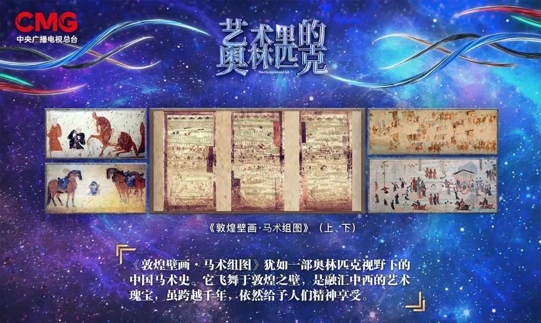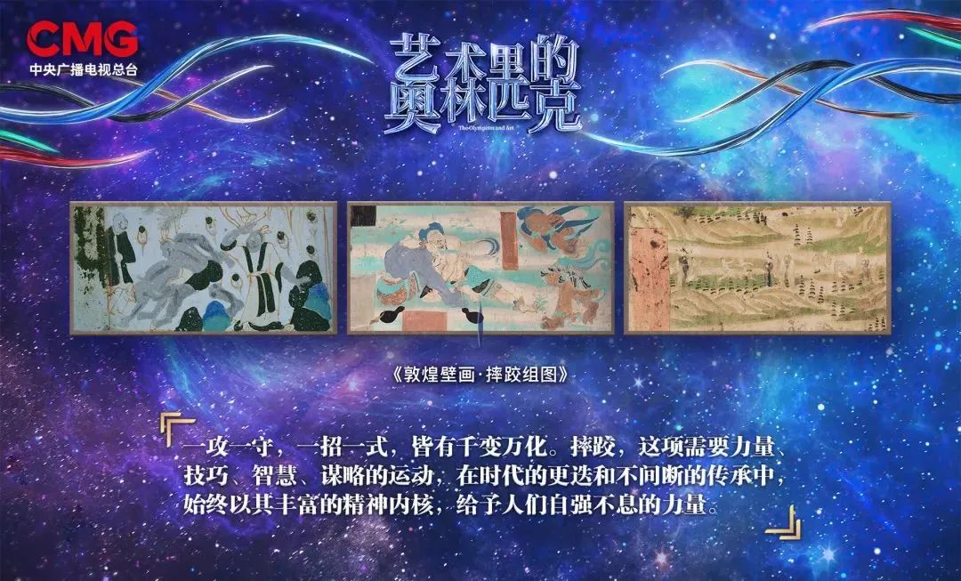 為了帶大家一覽敦煌石窟裏的「奧林匹克」,《藝術裏的奧林匹克》節目組精心打造了「敦煌壁畫系列」節目,目前已經播出《馬術組圖》和《摔跤組圖》兩期,還有一期《游泳組圖》等大家來看!