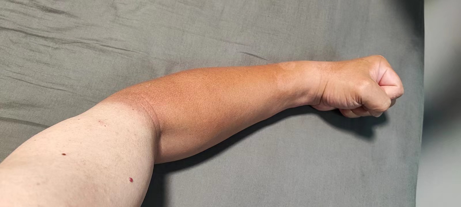 全身濕透曬出「熊貓臂」
