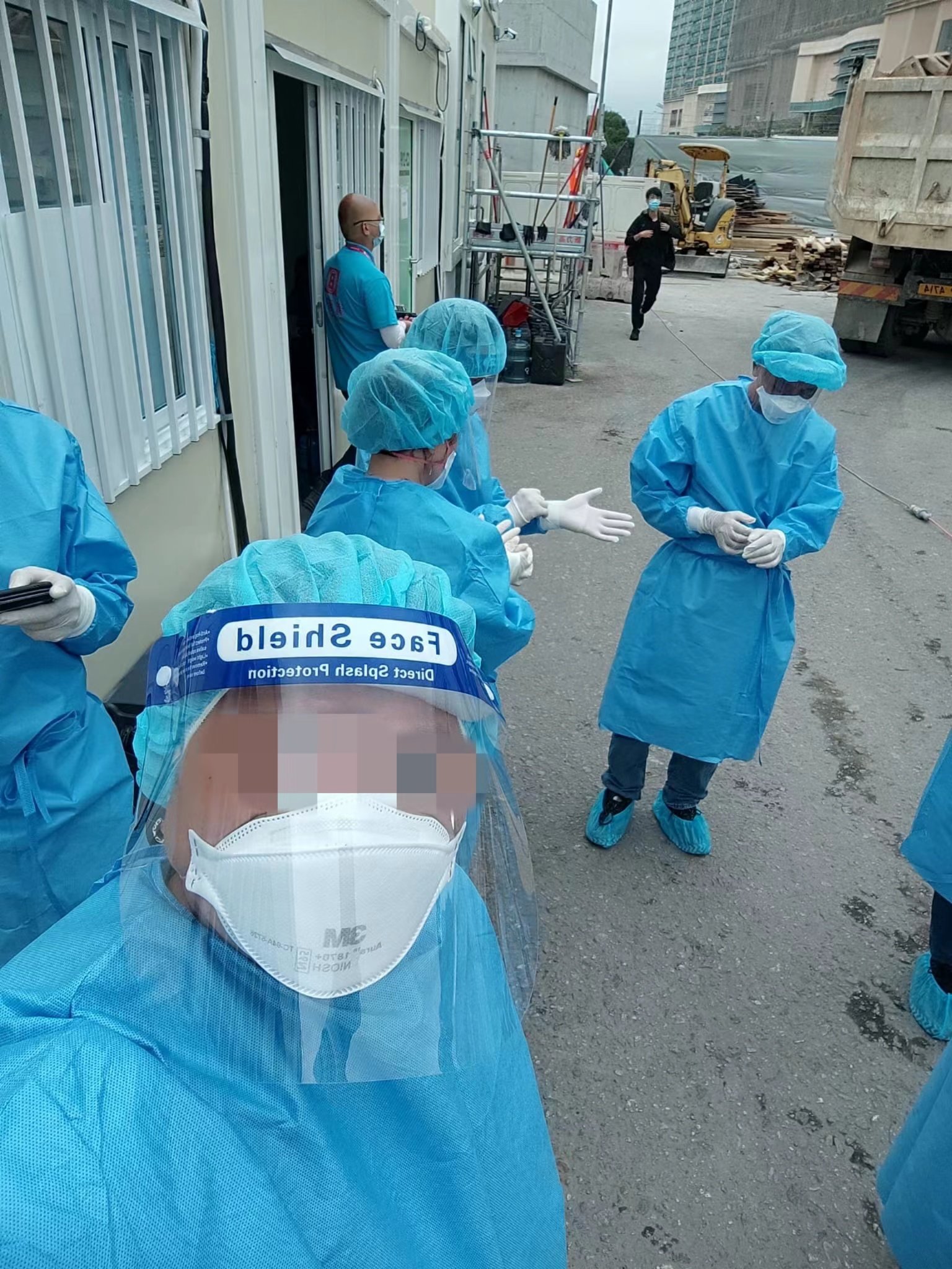 「最困難就是天氣,特別是穿保護衣進入方艙做清潔,真的是又熱又焗,每次2.5小時的清潔工作結束後,全身都會濕透,脫下保護衣後,都能倒出一大堆汗水。」他表示,每天的工作都要走超過2萬步,短短兩周的時間,已經瘦了2公斤,曬出了「口罩臉」和「熊貓臂」。