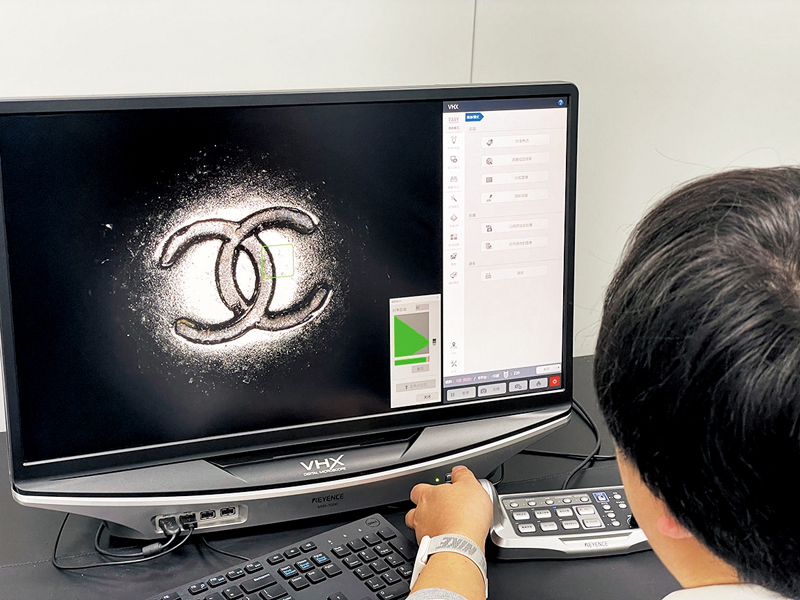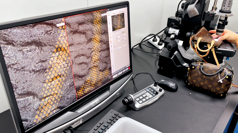 在上海寶山一幢辦公樓的整層樓面裏,是中溯檢驗檢測認證中心上海檢測倉,這裏擁有近50名工作人員,同時也是上海地區奢侈品行業裏領先的第三方鑒定中心。香港文匯報記者在此看到一間間功能不同的工作間,在這裏鑒定工作被拆分成精細化流程。每個工作間都有數名身穿白色工作服的工作人員在忙碌着。而在鑒定室中,頗富經驗的鑒定師正在鑒定,他們表情嚴肅,眼神專注,面對着堆放在貨架上數以千計的各式商品包括箱包、服飾、腕錶甚至飾品等,有人用卡蘭德放大鏡在端詳着商品五金細節,有些則用手細細摩挲着面料,甚至還有人將皮革面料放在鼻子下認真嗅着。
