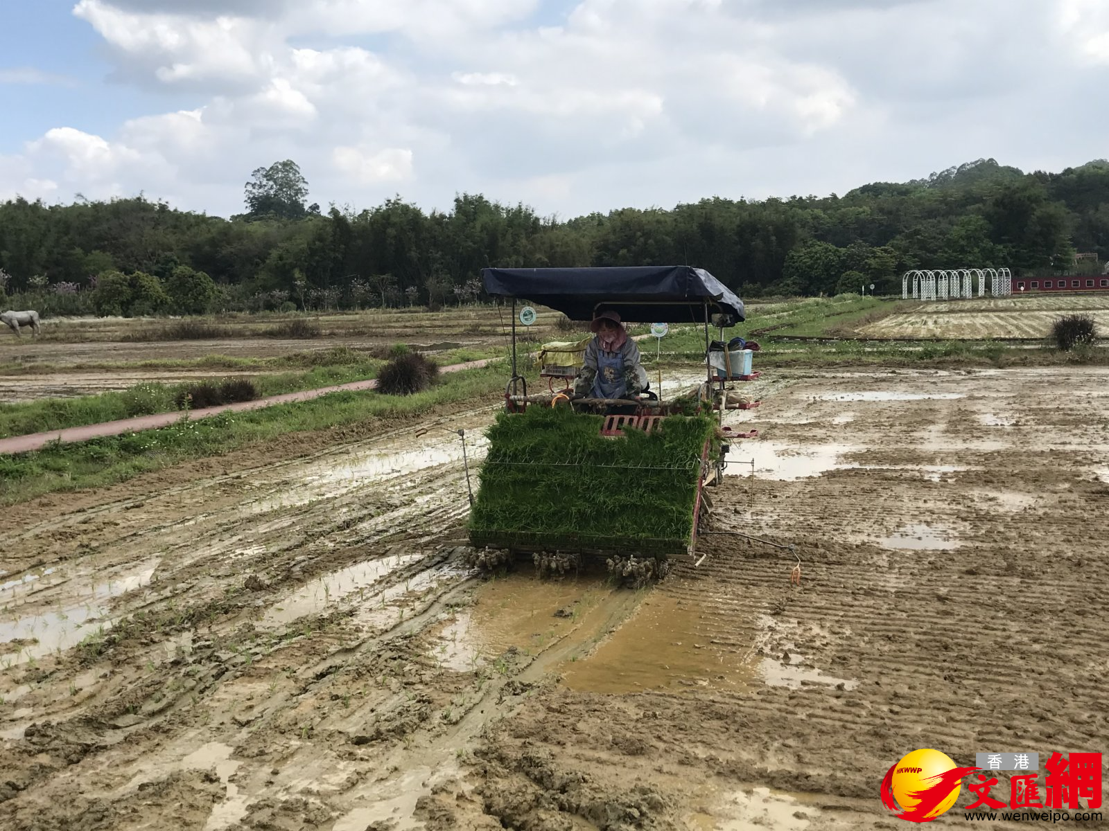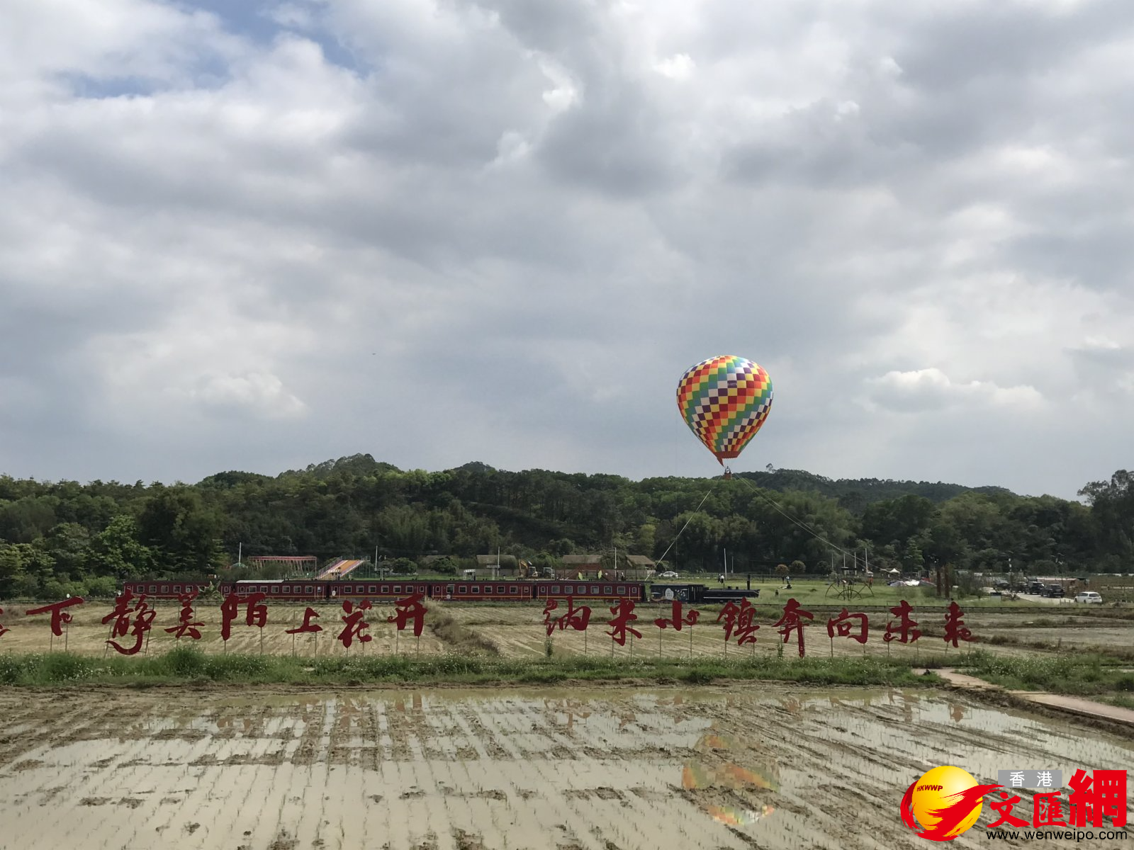 (香港文匯網記者 敖敏輝) 連日來,中新廣州知識城逕下村的稻田裏,全自動的插秧機在田裏來回穿梭,一簇簇綠油油的秧苗被整齊均勻地插種在水稻田中。智能農業也帶旺了鄉村特色旅遊,在農田附近打造的文旅項目,有遊客在乘坐熱氣球,從空中欣賞智能農耕;在另一邊,有遊客體驗着騎馬的樂趣。