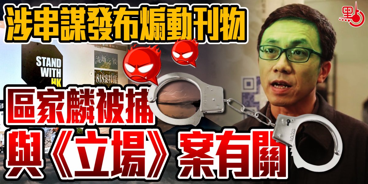 大公文匯全媒體報道:警方國安處以「串謀發布煽動刊物」罪拘捕前《立場新聞》博客作者區家麟,他涉嫌發布多篇煽動性文章,企圖達至引起憎恨或藐視政府、引起對香港司法的憎恨,及慫使他人不守法或不服從合法命令等目的。他被押返葵涌警署扣查,10多小時後至深夜獲准保釋離開。警方不排除有更多人被捕。