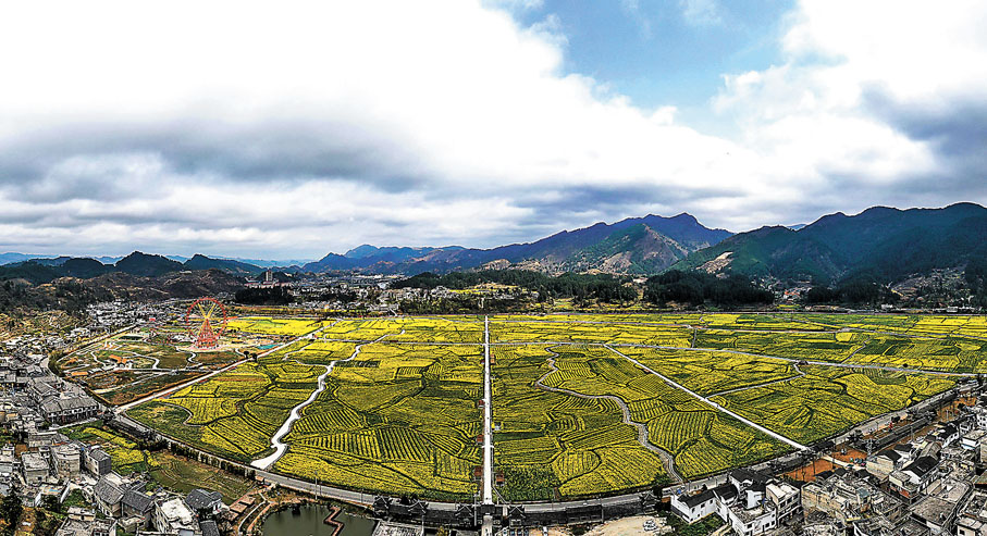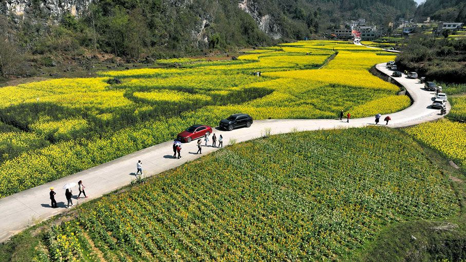 近年來,貴州省黔南布依族苗族自治州貴定縣大力推進美麗鄉村建設,以村居環境升級改造為主題,打造特色旅遊村寨。全縣種植油菜9.5萬畝,形成以「賞花經濟」為特色的農旅結合產業,吸引眾多遊客前來賞花觀光,帶動鄉村旅遊,推進鄉村振興。另外,在貴州省貴定縣盤江鎮音寨村,萬畝金黃的油菜花似金海,千頃雪白的李花、梨花像雪山,它們交相輝映,被人們形象地譽為「金海雪山」,並成為風景名勝區。