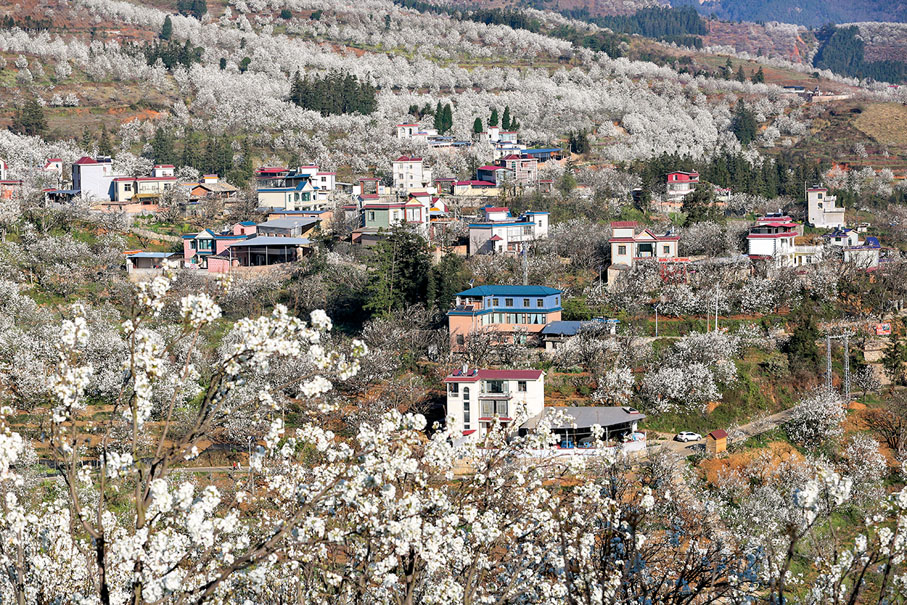 在雲南省紅河哈尼族彝族自治州個舊市雞街鎮加級寨村,盛產遠近聞名的魯沙梨,擁有紅河地區最大的梨花谷,梨花谷也稱加級寨萬畝梨園,梨花漫山遍野,蔚為壯觀,每年3月伊始,上萬畝梨花競相怒放,花朵潔白似雪、清香淡雅,形成起伏綿延的花山花海,吸引了大批遊客和攝影愛好者前來觀賞、攝影,被譽為「中國最美的梨花之鄉」。這裏是一個望得見山、看得見水、記得住鄉愁的美麗家園,四季景色美不勝收。