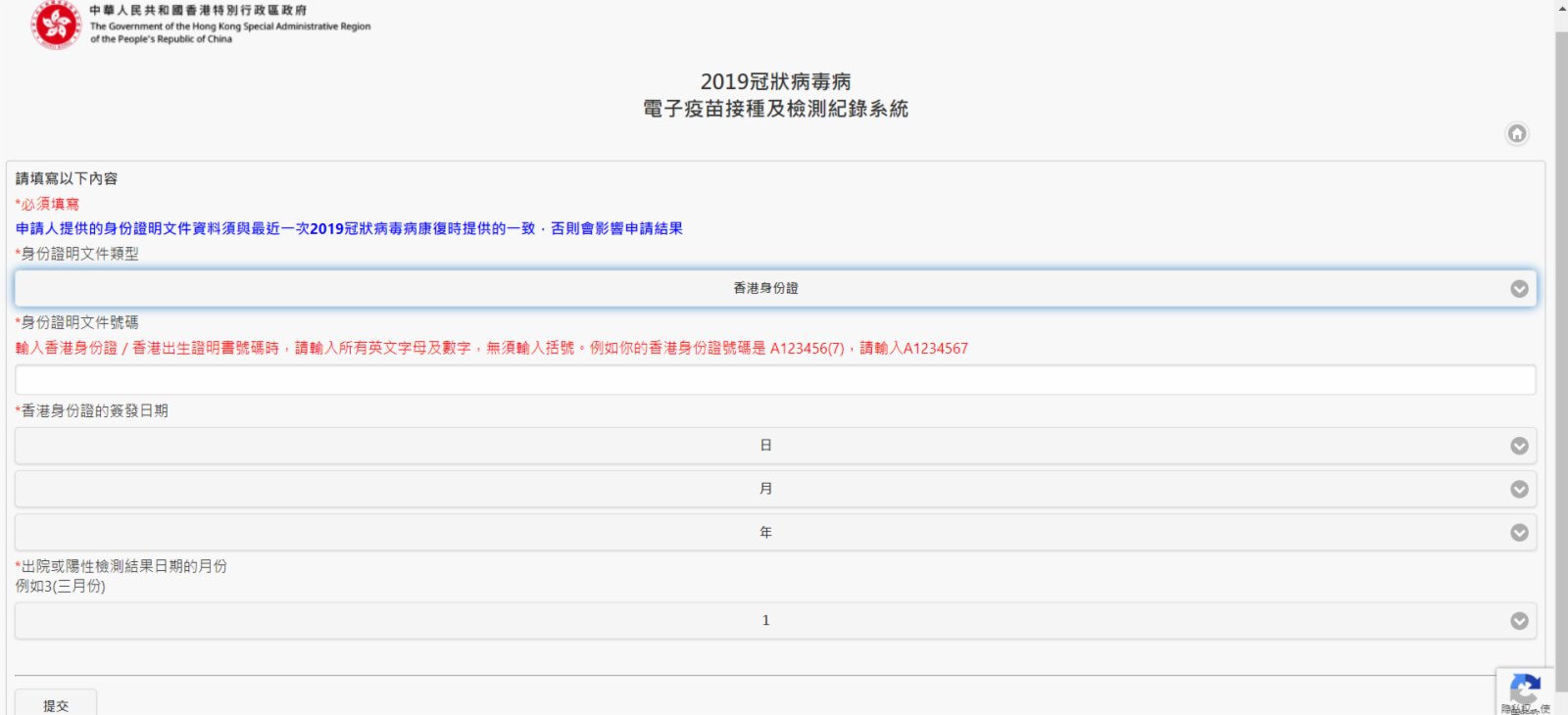 新冠康復者可於政府網站登記,選擇「新冠病毒病康復記錄」,繼而選擇填寫相關的個人資料,包括出院或陽性檢測結果日期的月份。系統亦會提醒使用者,申請人提供的身份證明文件資料須與最近一次新冠肺炎康復時提供的資料一致,否則會影響申請結果。
