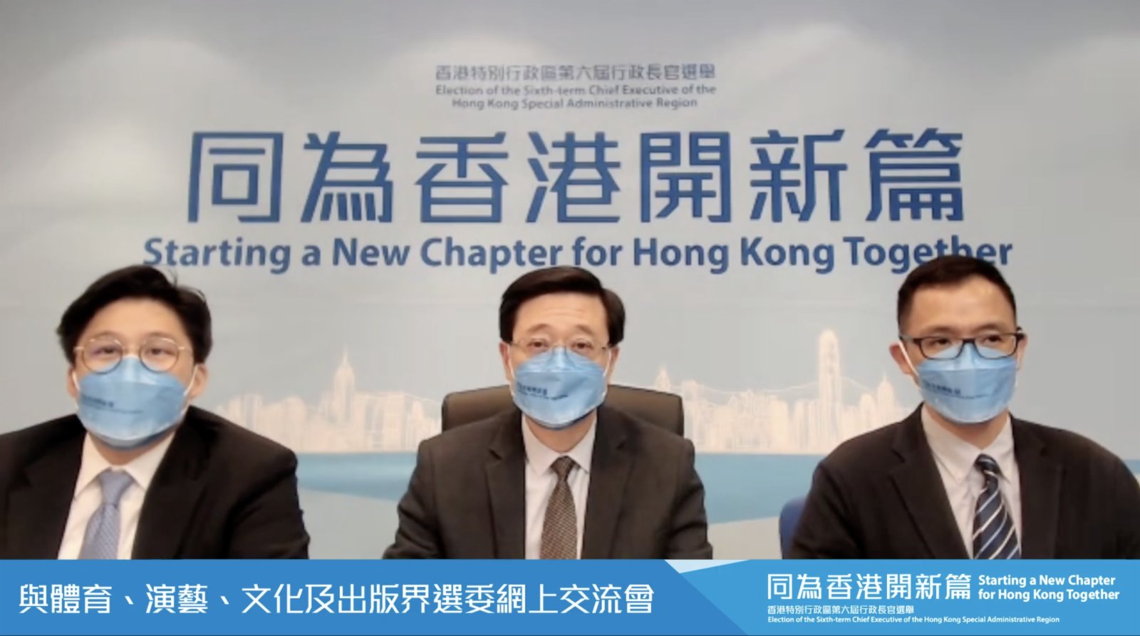 (大公文匯全媒體記者 李九歌)特首選舉參選人李家超今日(20日)繼續選舉工程,下午與體育、演藝、文化及出版界選委舉行網上交流會,逾40位選委與會。李家超表示,體育、演藝、文化及出版代表「活力」,對香港整體不僅是產業發展,更是精神和靈魂。他再次介紹三個施政理念,即以結果為目標解決問題、全面提升香港競爭力及奠定穩固發展基石,重申社會力量在今次抗擊疫情中得以體現,目標是集中和動員,共同解決問題。