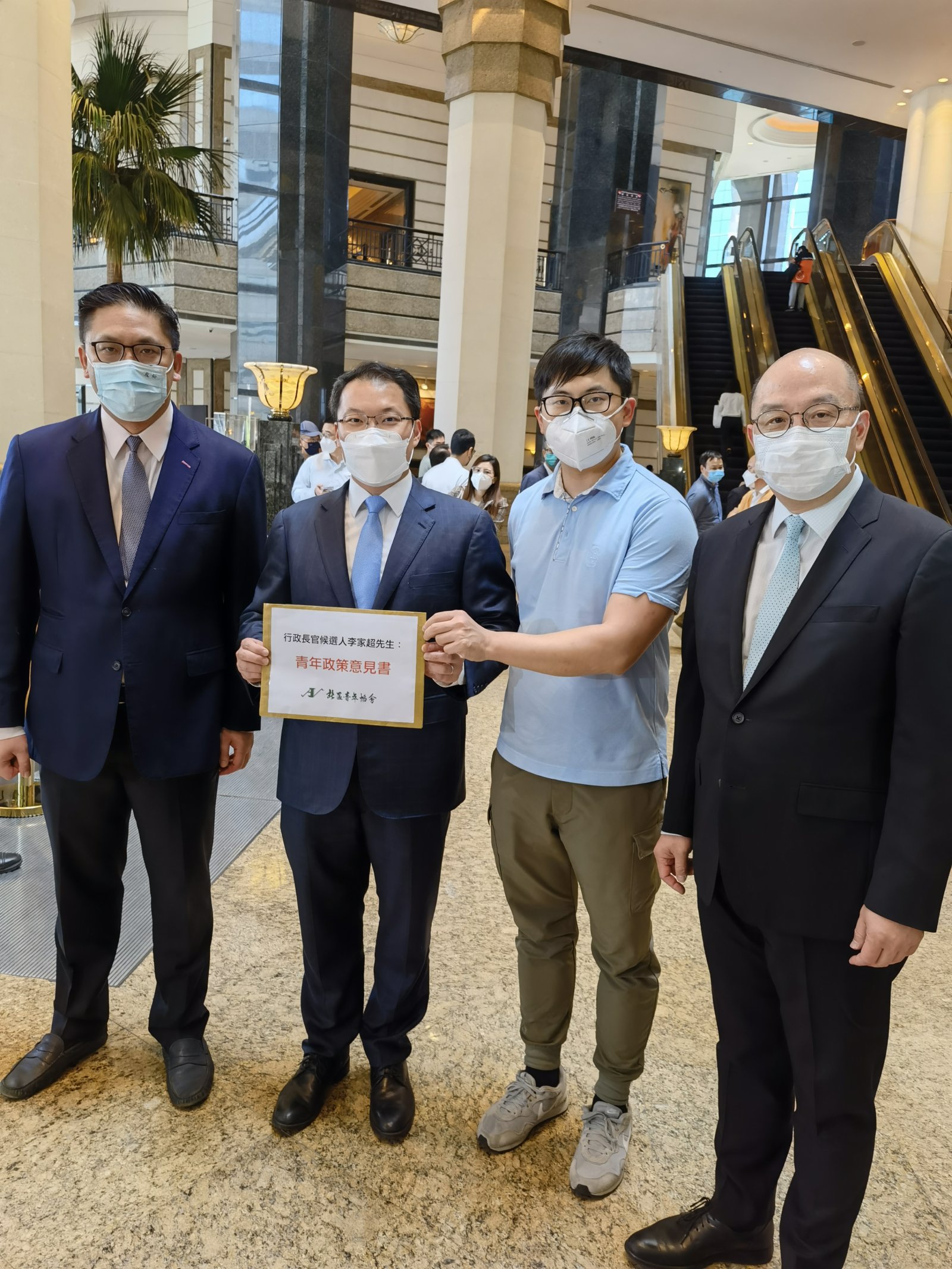 大公文匯全媒體報道:完善選舉制度後的首場特首選舉將於5月8日舉行,候選人李家超正全力撰寫政綱。北區青年協會主席廖宇軒今日(21日)帶同協會副主席鄧道昆及執委潘孝汶,向競選辦副主任譚志源及梁宏正提交青年政策倡儀書,希望新一屆政府繼續聚焦青年工作,並且未來能將北部都會區發展與北區青年政策有機結合,為眾多青年提供創業平台,解決就業、住屋等多方面問題。