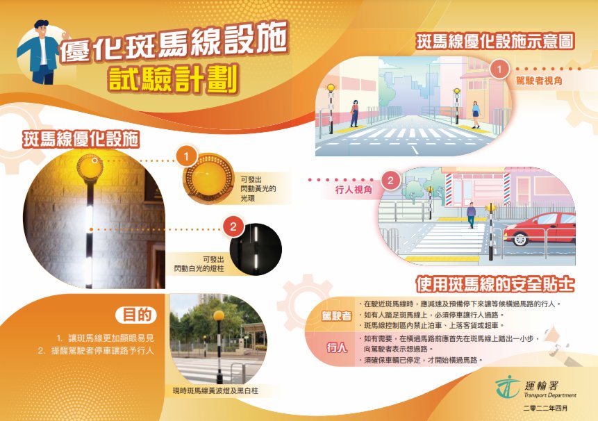 運輸署呼籲駕駛者注意道路安全,當駛近斑馬線時,必須留意是否有行人等候橫過馬路並準備減速。如行人已踏足斑馬線,駕駛者必須停車及讓行人過馬路。