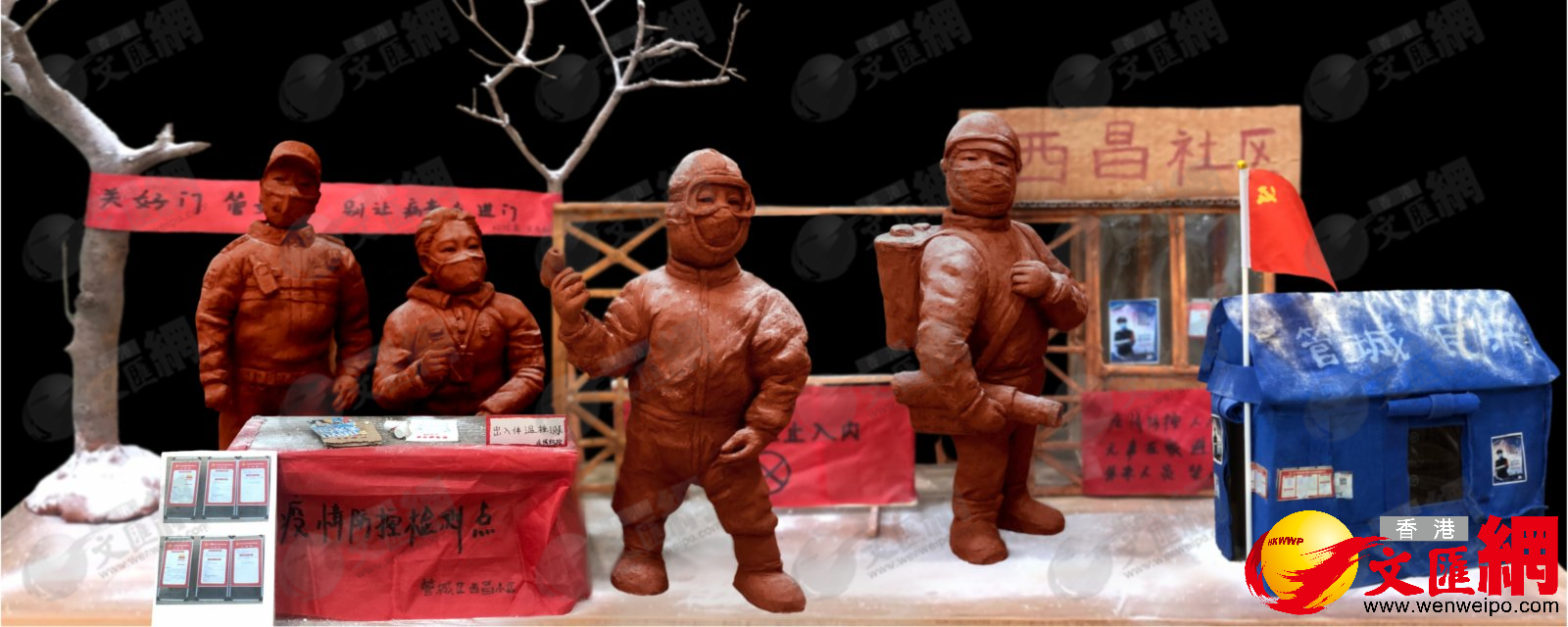 抗擊新冠肺炎疫情期間,趙恩民看到眾多醫護人員沖在一線,便用泥塑創作三組作品,將一線人員消殺防疫、核酸檢測等場景定格。他說,「咱要不把這些感人的場景記錄下來,給年輕人講講,以後都想不起來了,就像刮過一陣風一樣。」