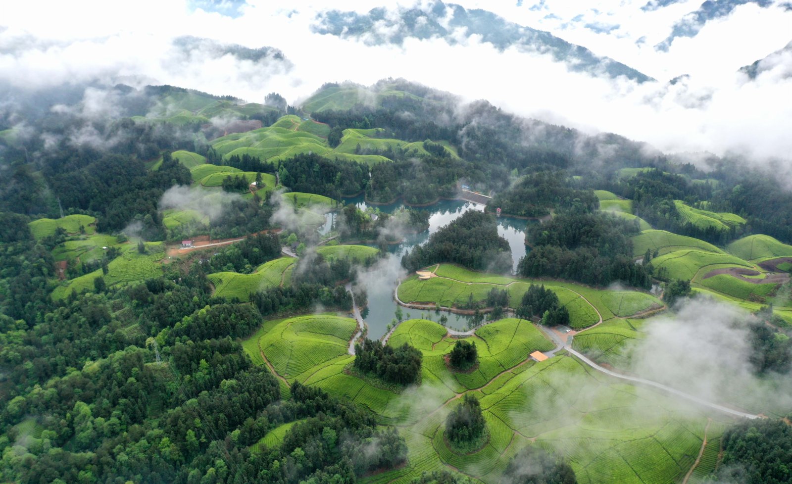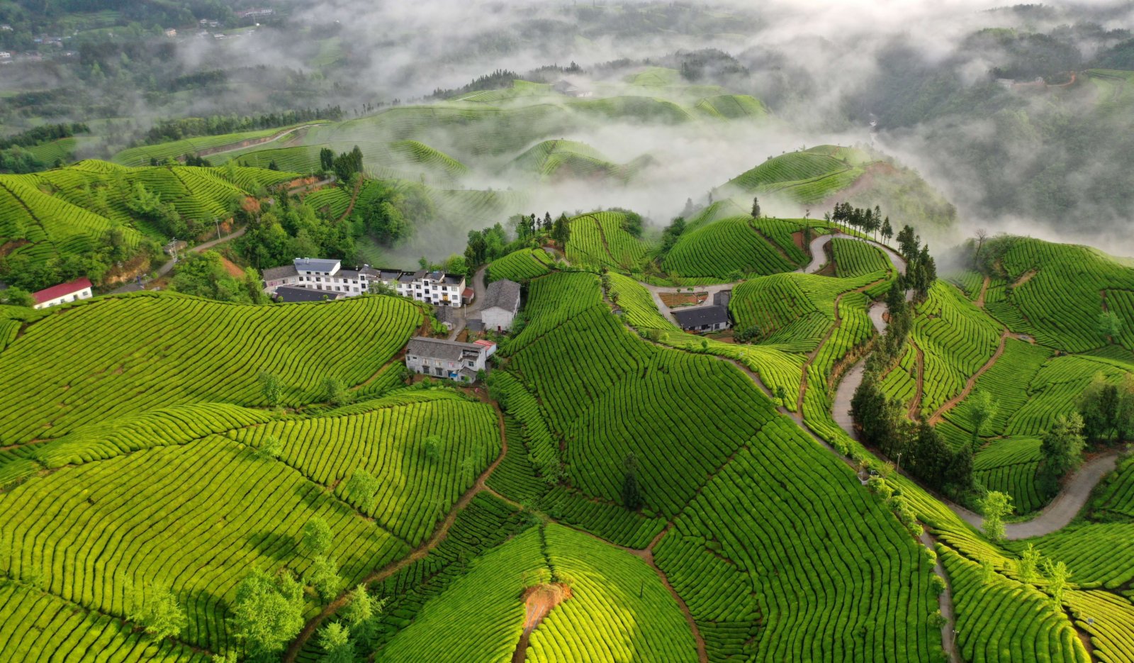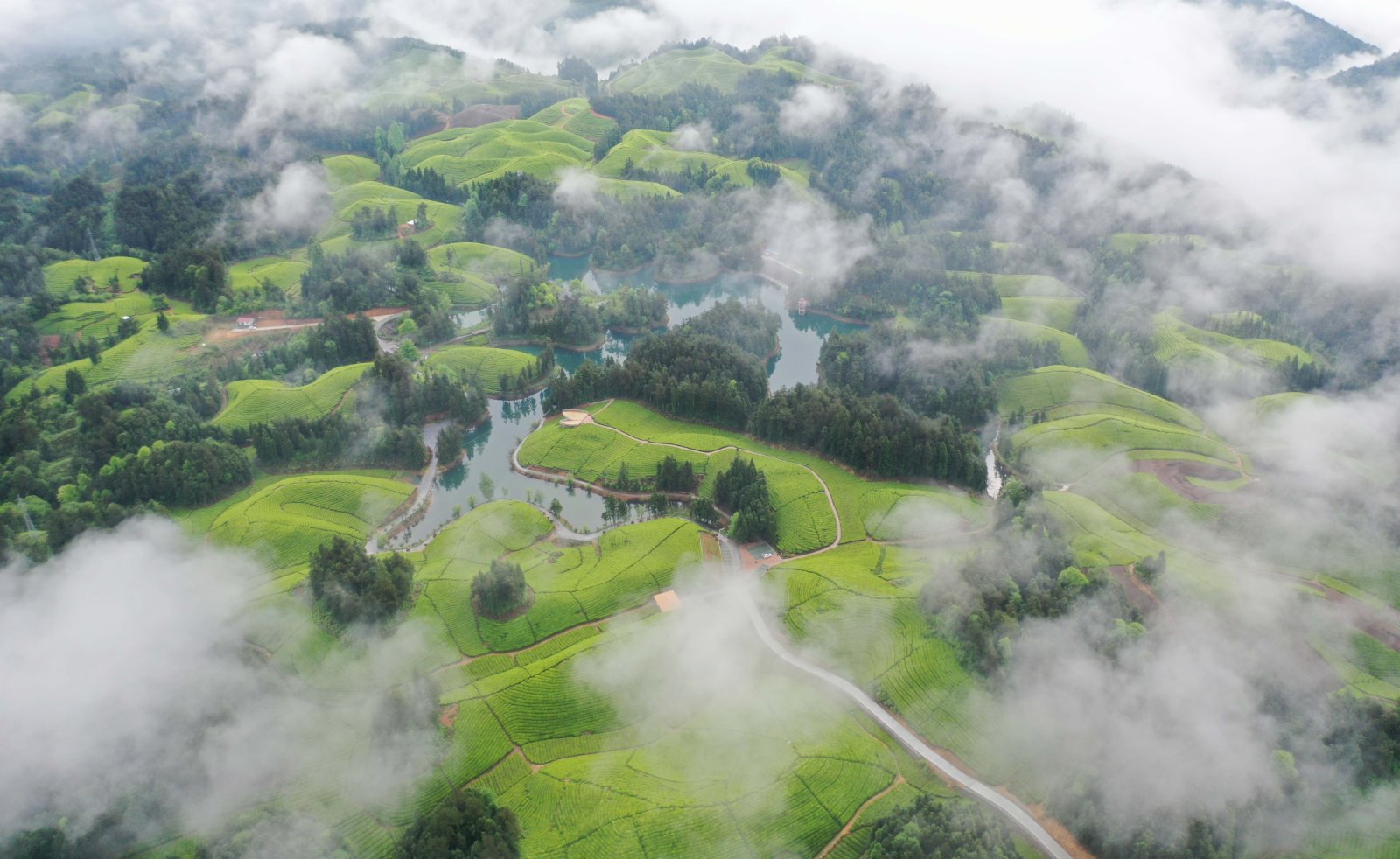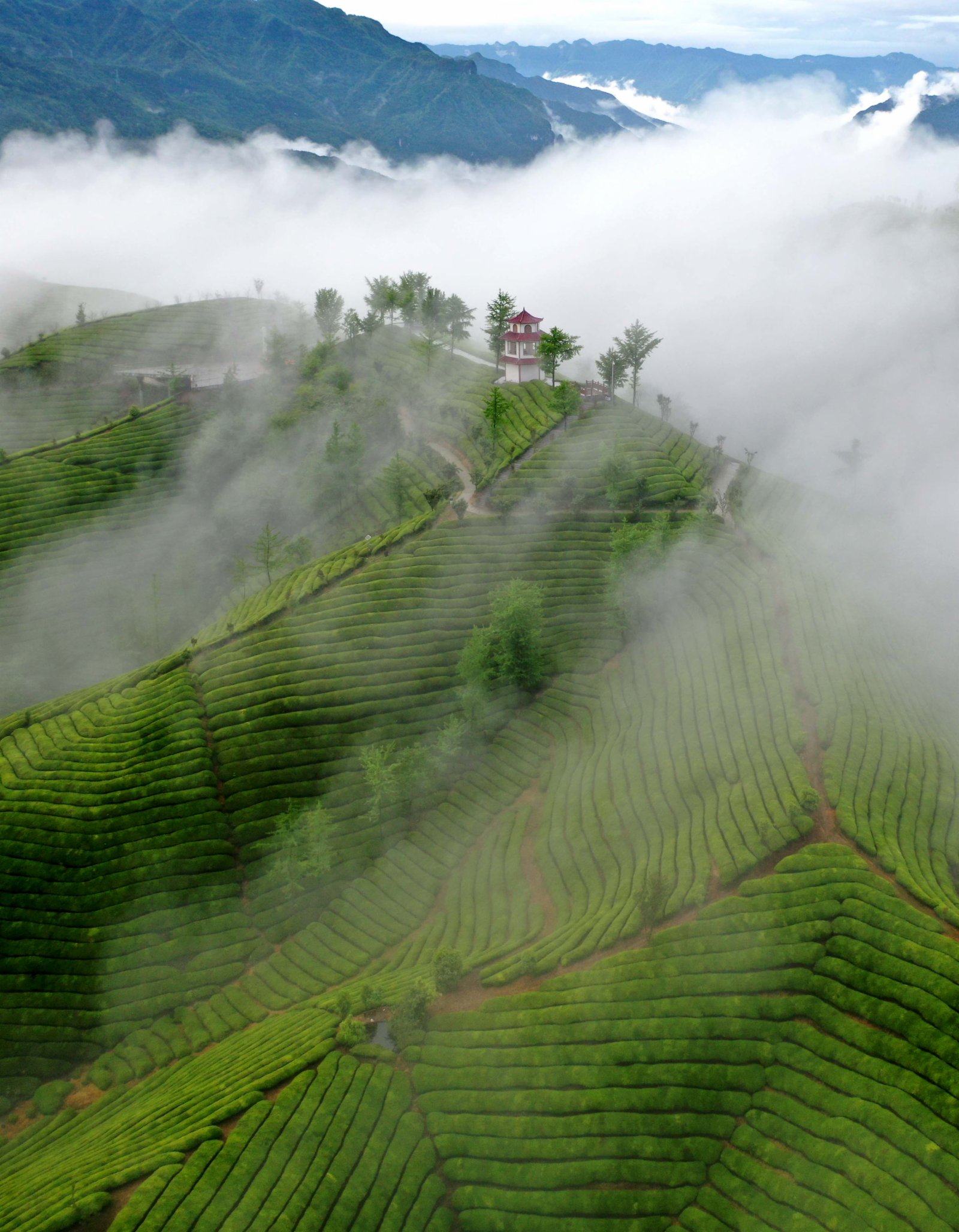 眼下正是採茶時,湖北省恩施土家族苗族自治州鶴峰縣走馬鎮的景觀茶園青翠欲滴,宛如畫卷。